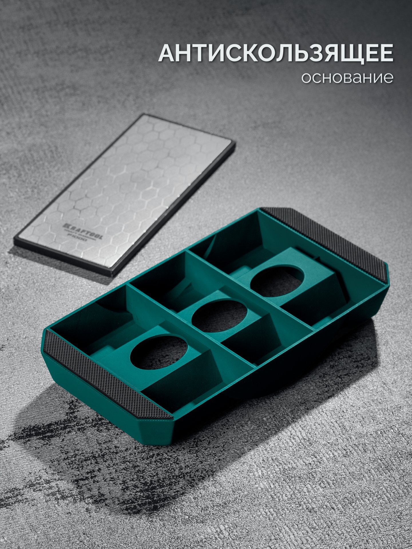 Double-side Две стороны разной зернистости: 400 и 1000 грит, для выполнения предварительной и финишной заточки.