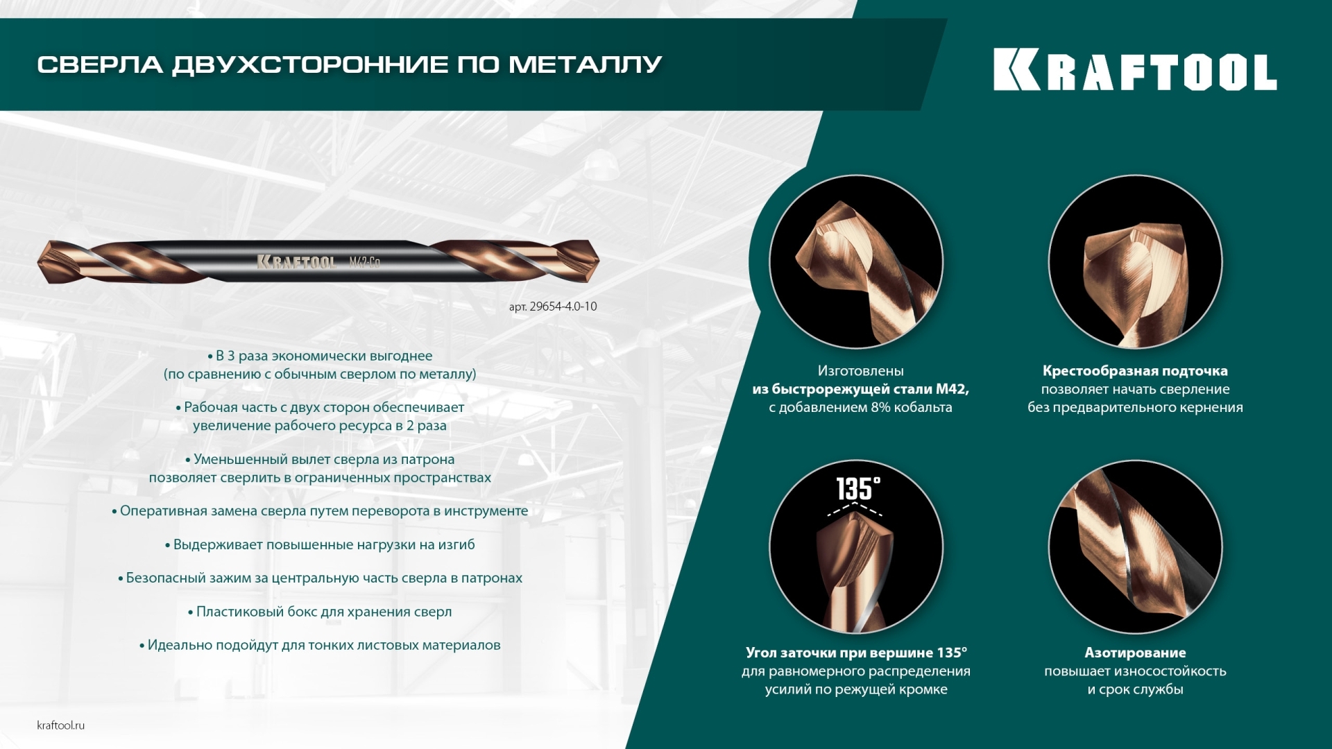 • Угол заточки при вершине равный 135° для равномерного распределения усилий по режущей кромке