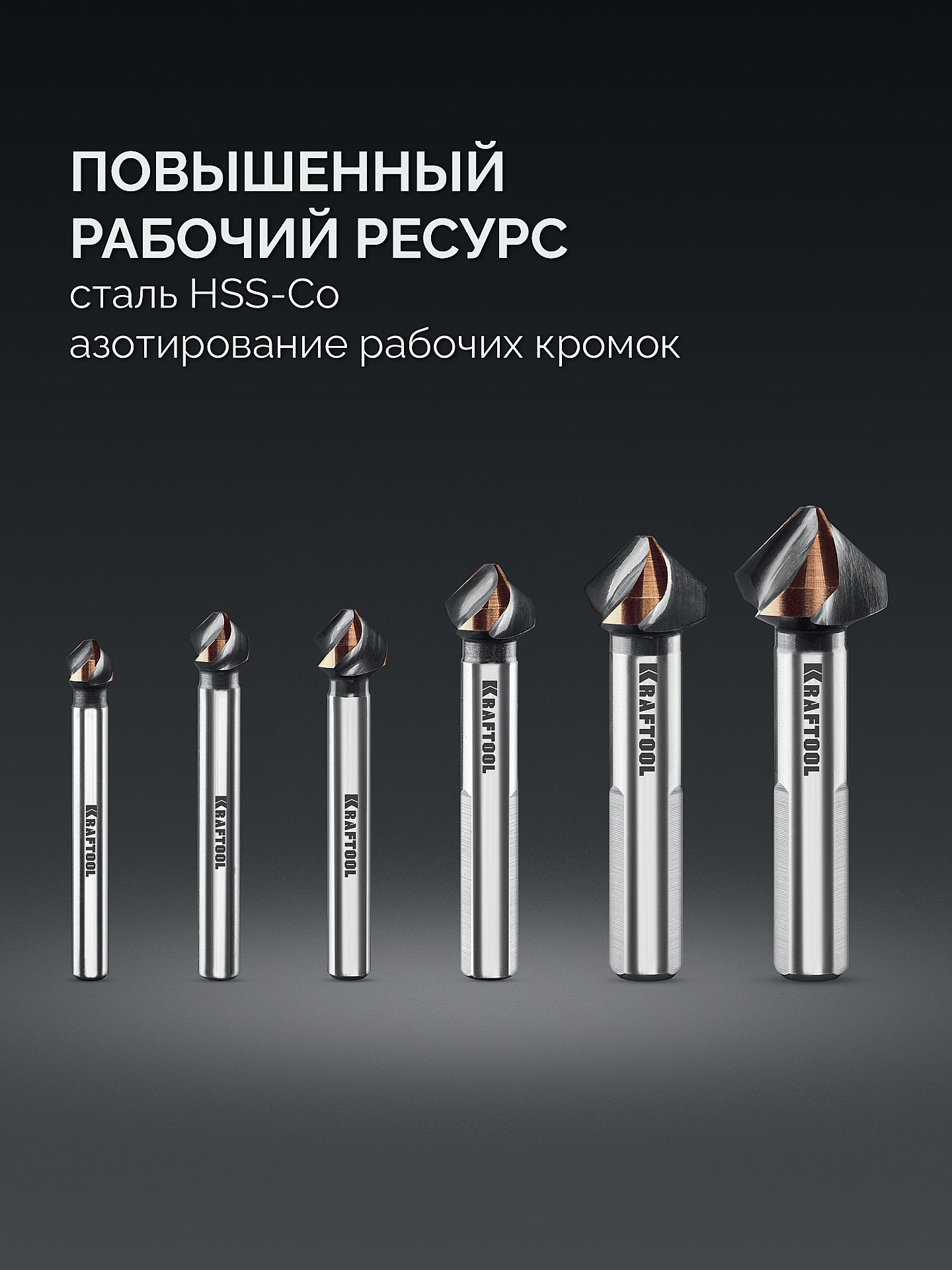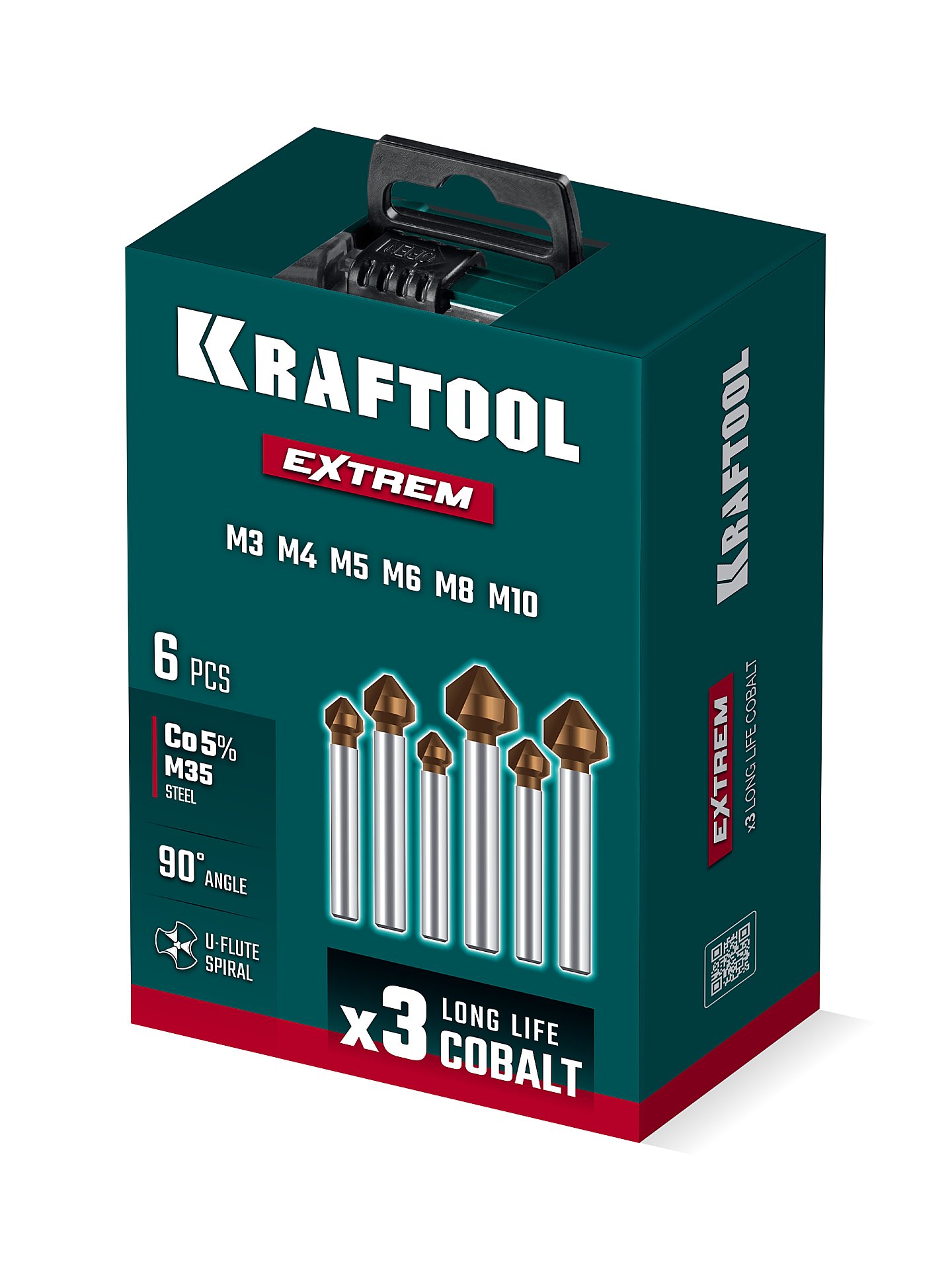 KRAFTOOL EXTREME Со5-А, 6 шт (М3-М10), сталь M35, U-образная спираль, Набор зенкеров (29734-H6)