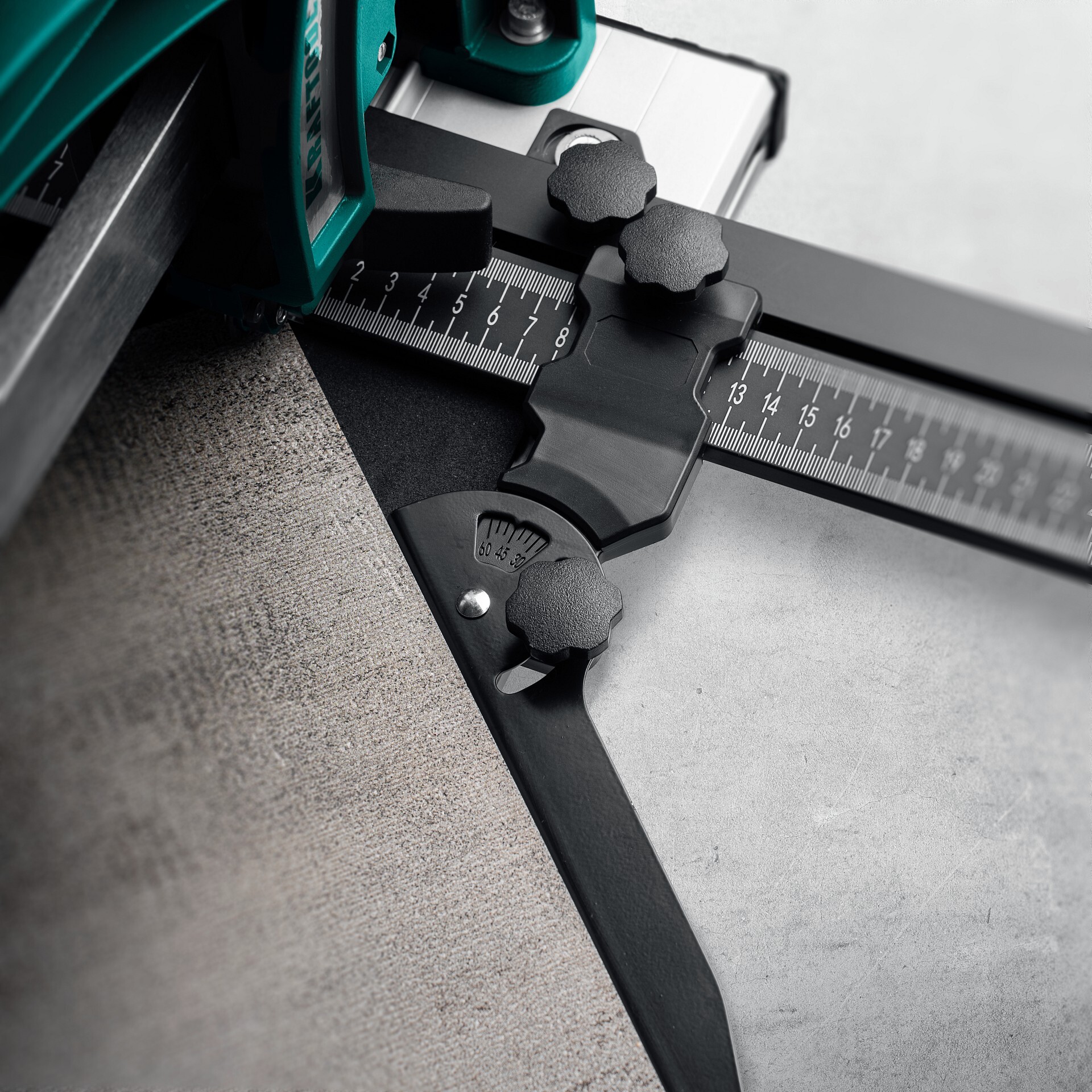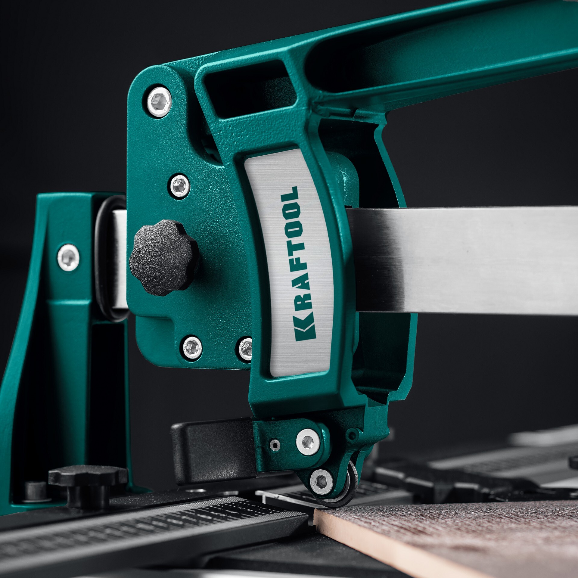 Профессиональный плиткорез ProfiLine подходит для резки любой плитки, толщиной до 16мм. Его режущий элемент рассчитан на 5 километров реза без замены. Плавный ход каретке обеспечивают 10 подшипников, скрытых в корпусе. Цельный стальной рельс прямоугольного сечения позволяет каретке надежно перемещаться, не застревая даже при самых сильных нагрузках. Боковые опоры можно разместить в любом удобном для Вас положении, а линейка с угломером позволят сделать самый точный рез. Алюминиевое основание облегчает конструкцию, а фиксатор каретки позволяет безопасно перевозить плиткорез.