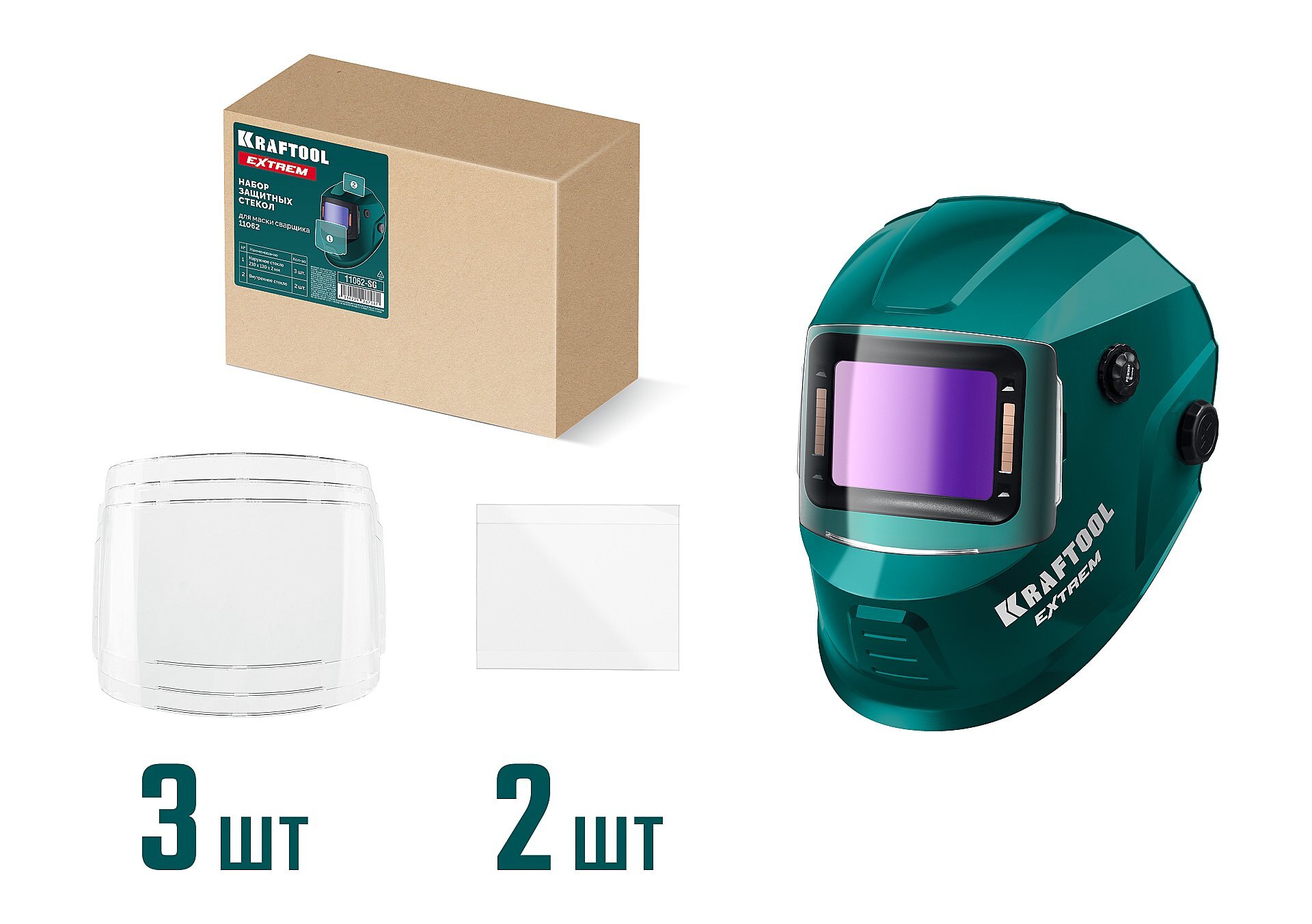 Служат запасными защитным стеклами для маски сварщика KRAFTOOL, модель 11062