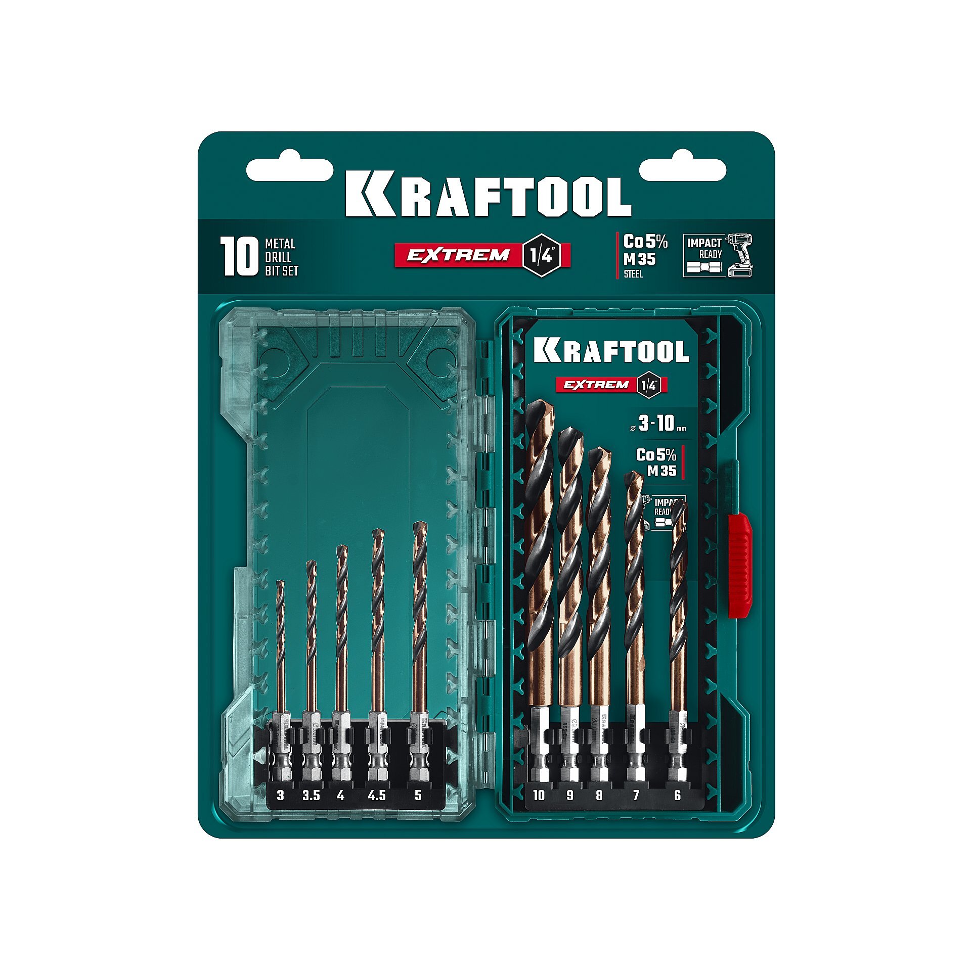 KRAFTOOL НЕХ-1/4″, 10 шт, набор сверл по металлу для винтовёртов и шуруповертов IMPACT READY (29652-H10)