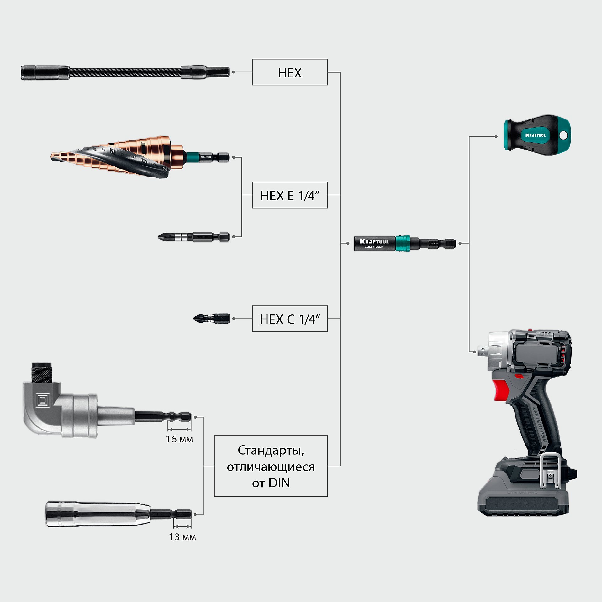 Быстросъемный ударный адаптер для шуруповертов с держателем для бит AUTO-LOCK (автоматический механизм держателя бит для быстрой фиксации и извлечения бит (работа одной рукой)).