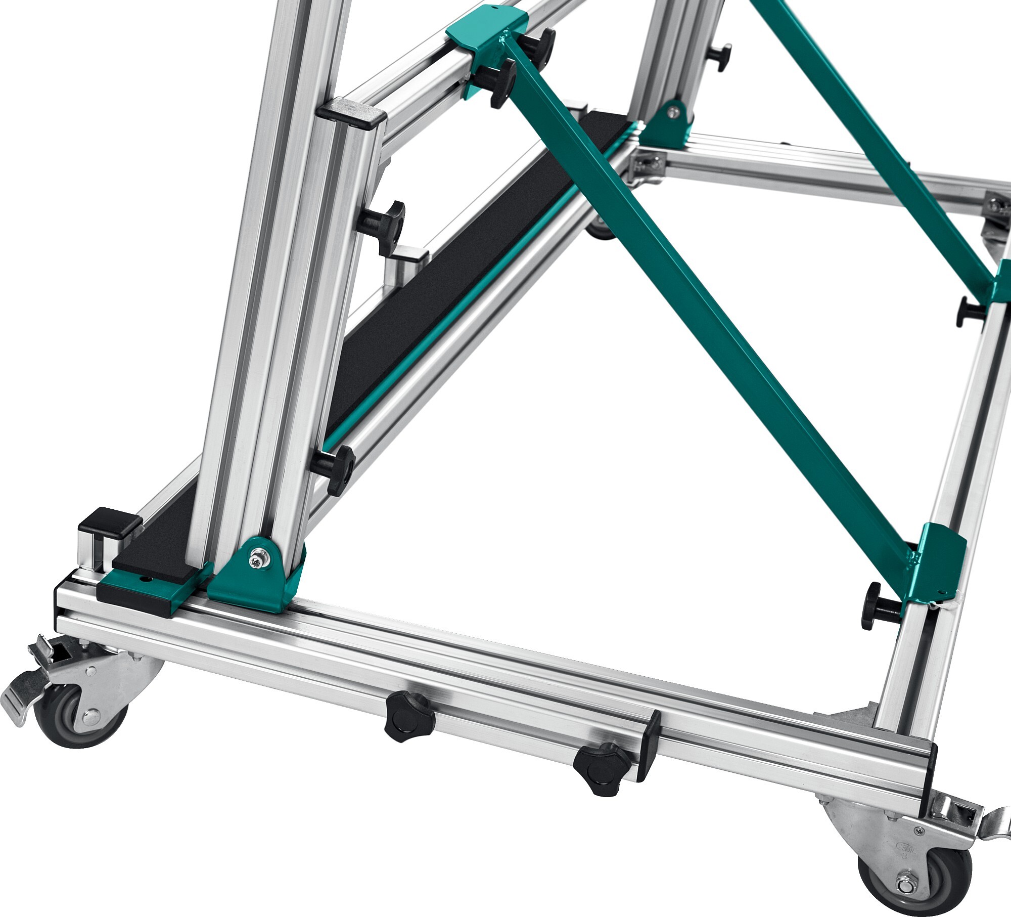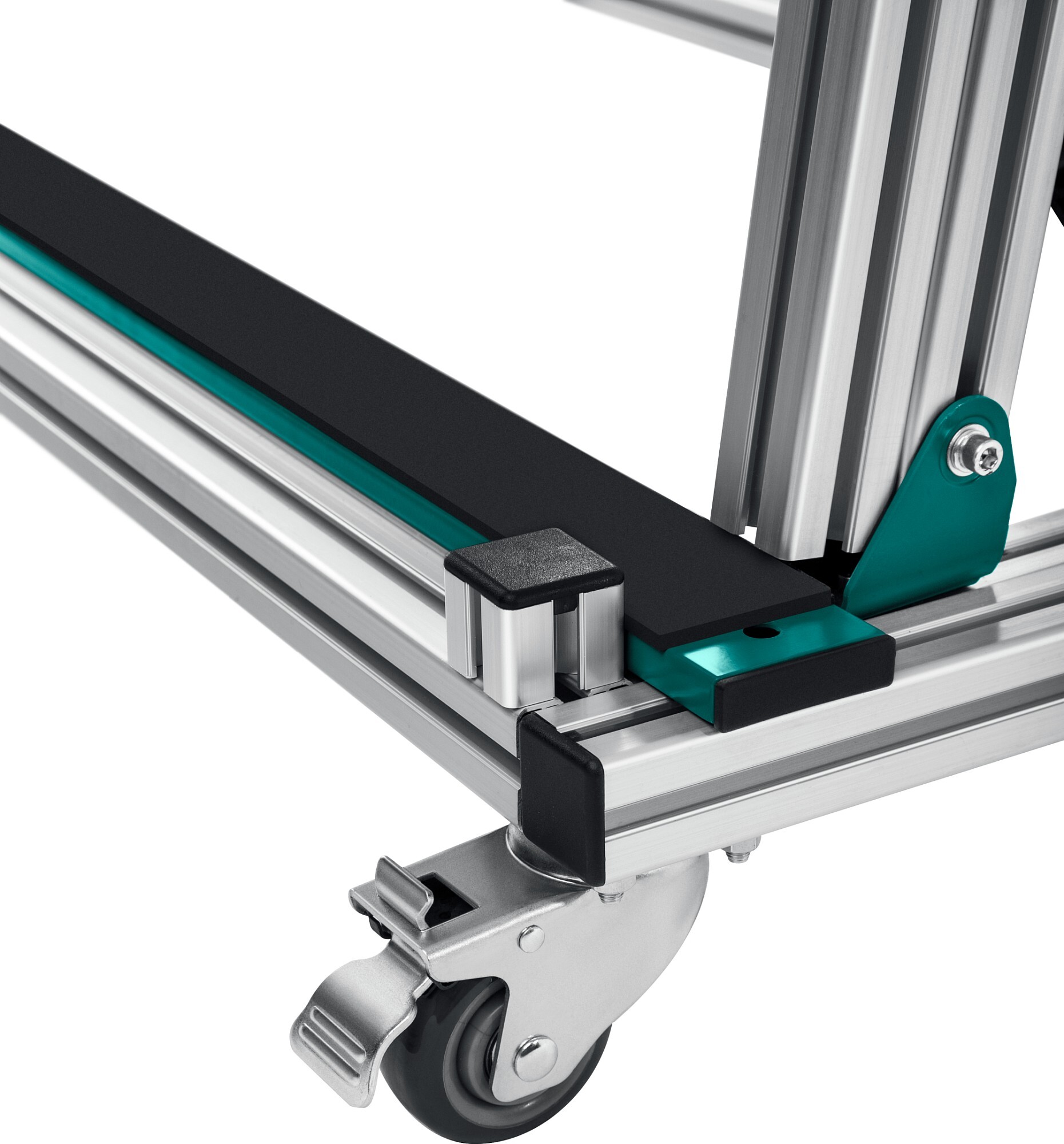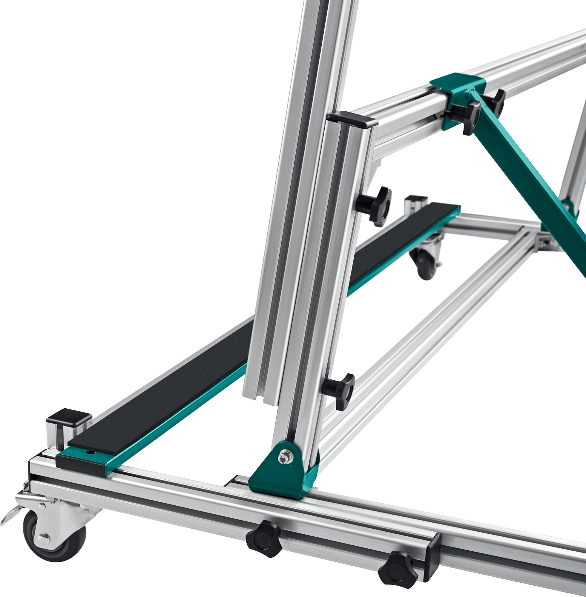Быстросборная конструкция позволяет компактно хранить, перевозить и собирать тележку. Максимальная нагрузка 180 кг. Резиновое основание для защиты плитки от повреждений. Поворотные колеса со стопором.