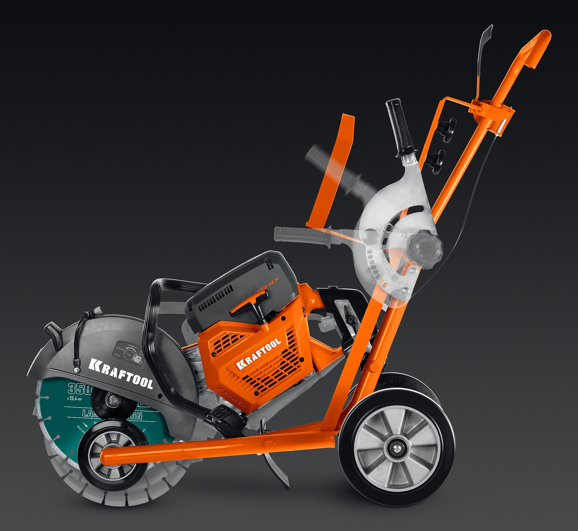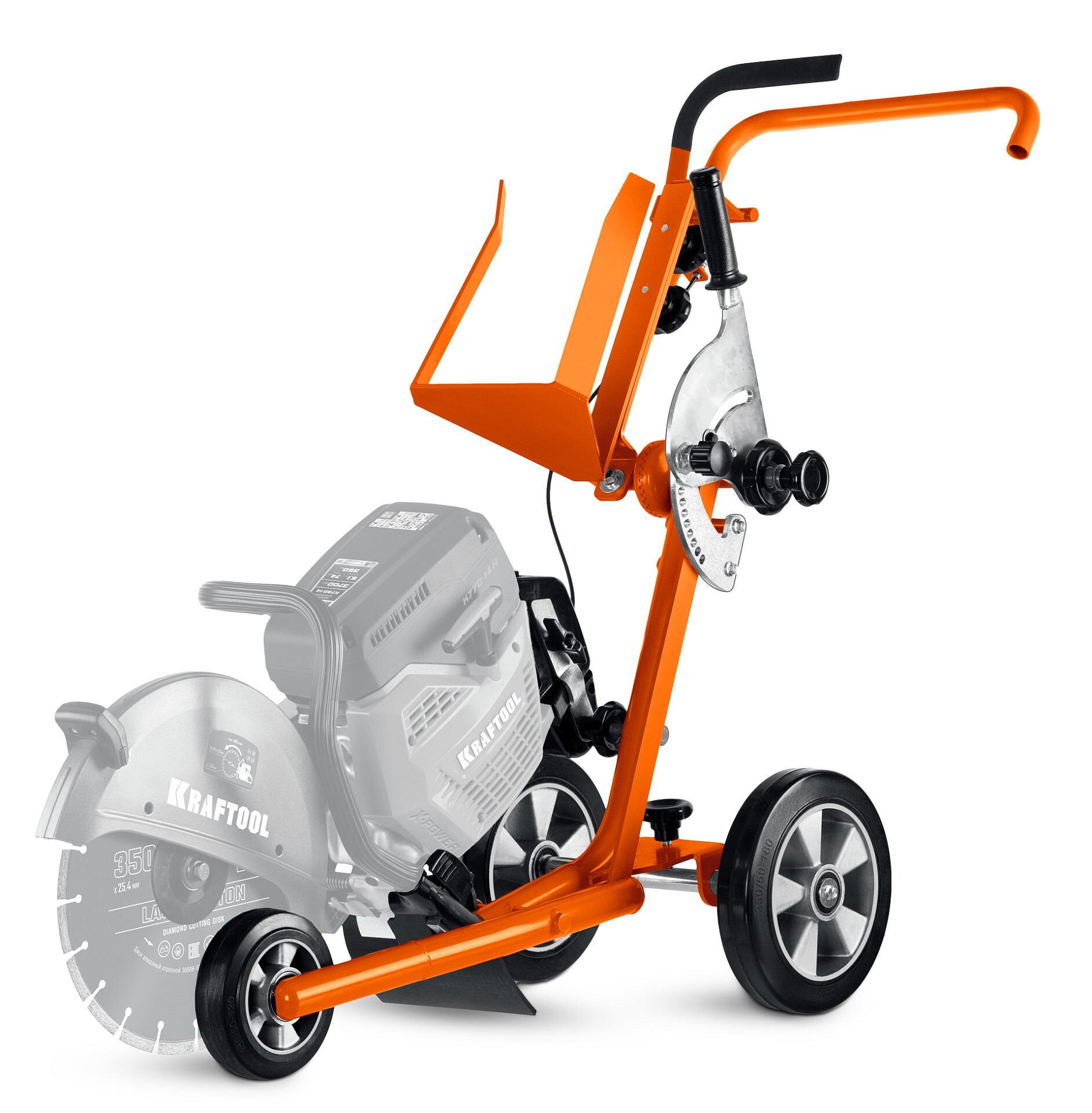Для всех бензорезов Kraftool. Применение тележки позволяет выполнять длинные ровные резы с заданной глубиной по прямой, по дуге, рядом с вертикальными поверхностями