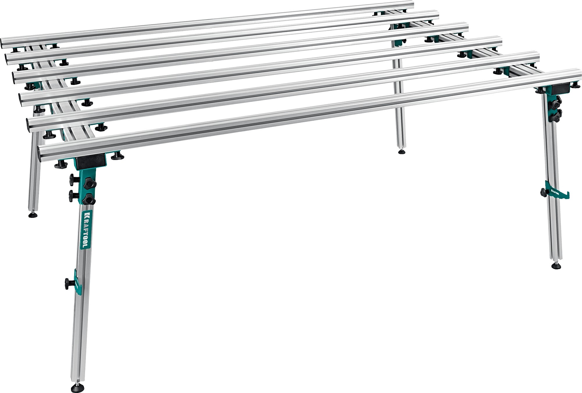 Быстросборная конструкция позволяет компактно хранить, перевозить и собирать стол. Легко масштабируется благодаря плавающим направляющим. Упоры ножек стола позваляют настроить высоту на неровной поверхности. Максимальная нагрузка 250 кг.