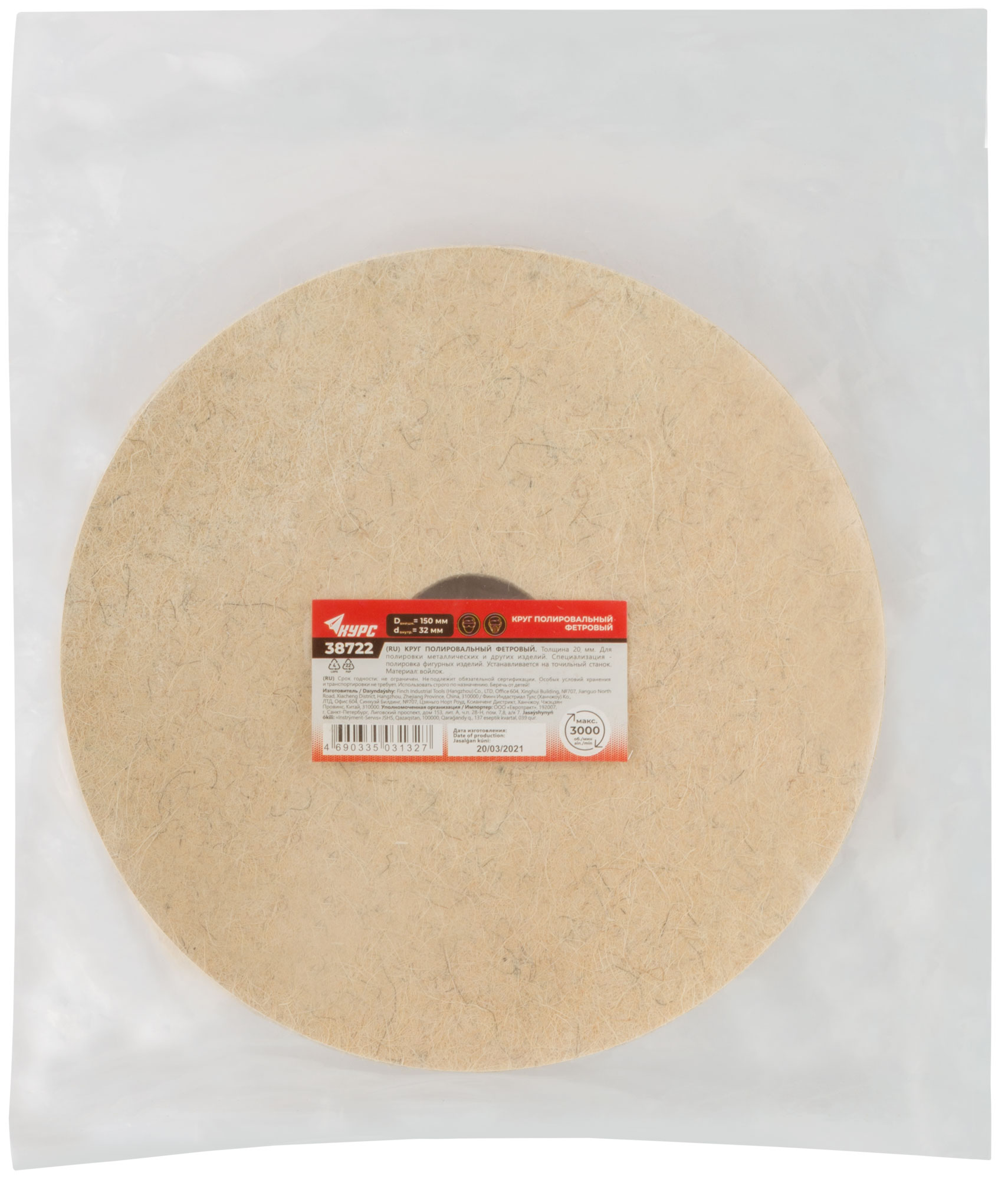 Толщина 20 мм. Для полировки металлических и других изделий. Специализация - полировка фигурных изделий. Для точильных станков. Посадочный диаметр 32 мм. Материал: войлок. Упаковка: п/э пакет.