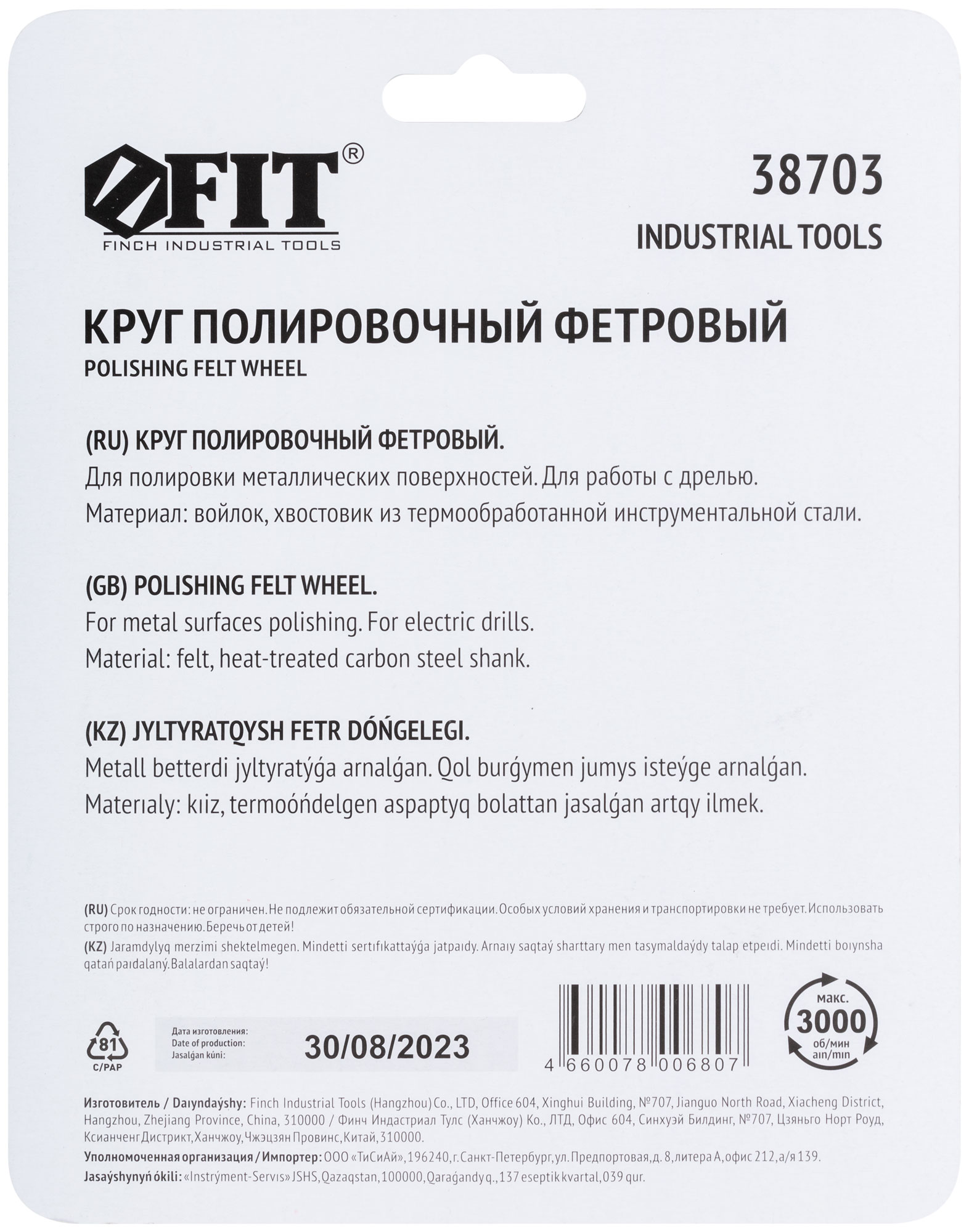 Фетровый. Используется для полировки металлических поверхностей. Упаковка: блистер.