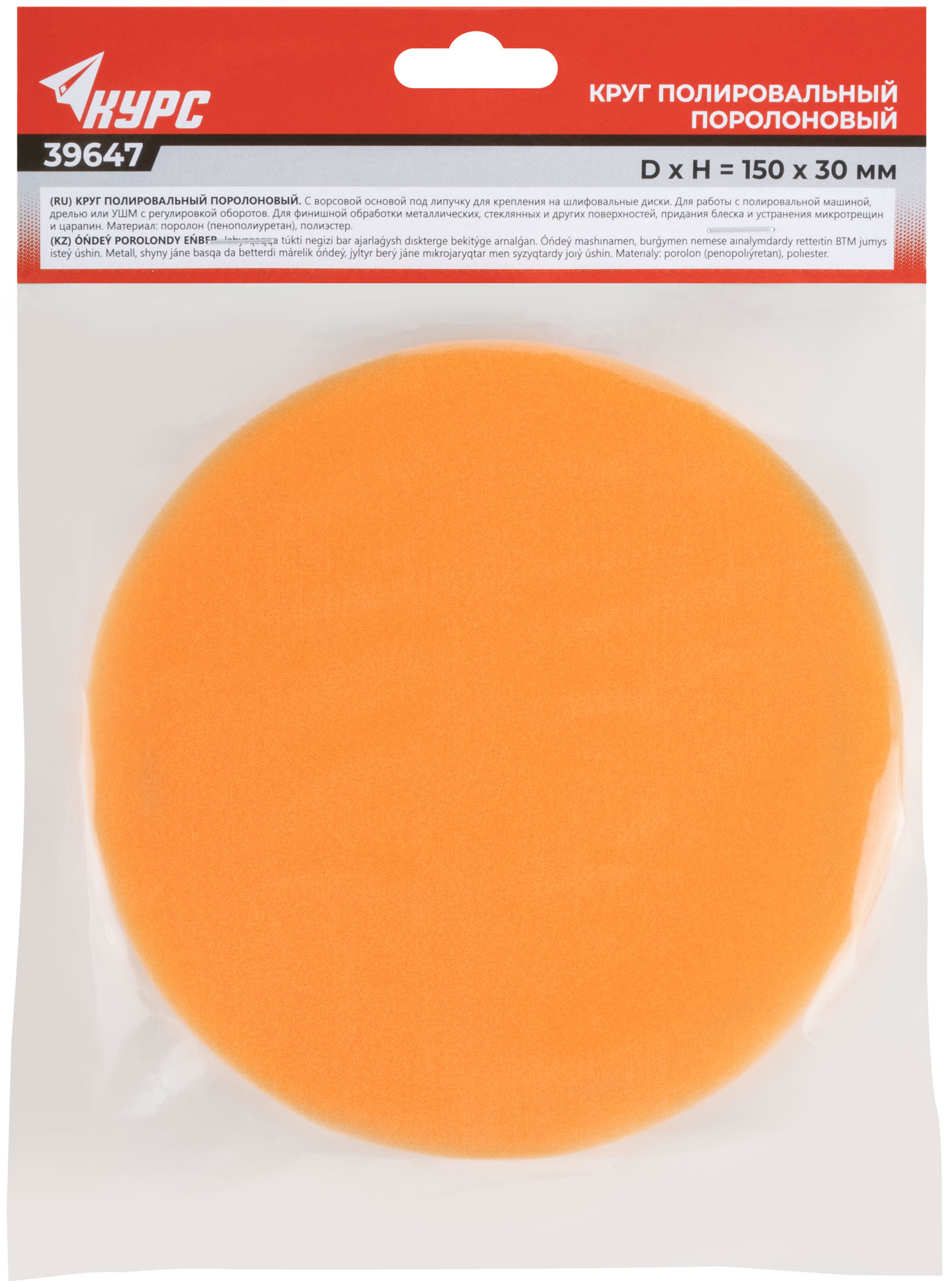 Поролоновый. Для полировки различных материалов с использованием полиролей, восков и других составов. С ворсовой основой под липучку. Для работы с полировальными машинами, дрелями, УШМ с регулировкой оборотов. Материал: поролон, полиэстер. Упаковка: п/э пакет с картонным подвесом.
