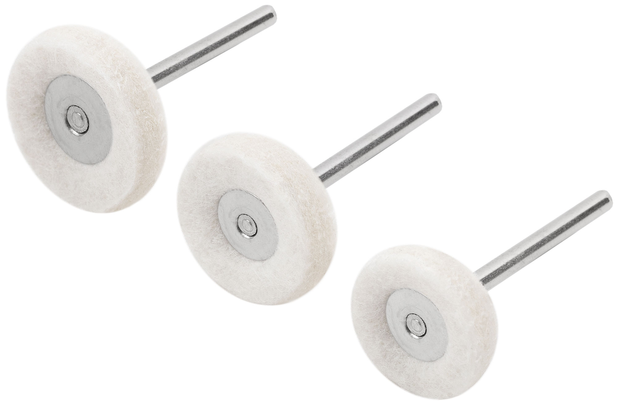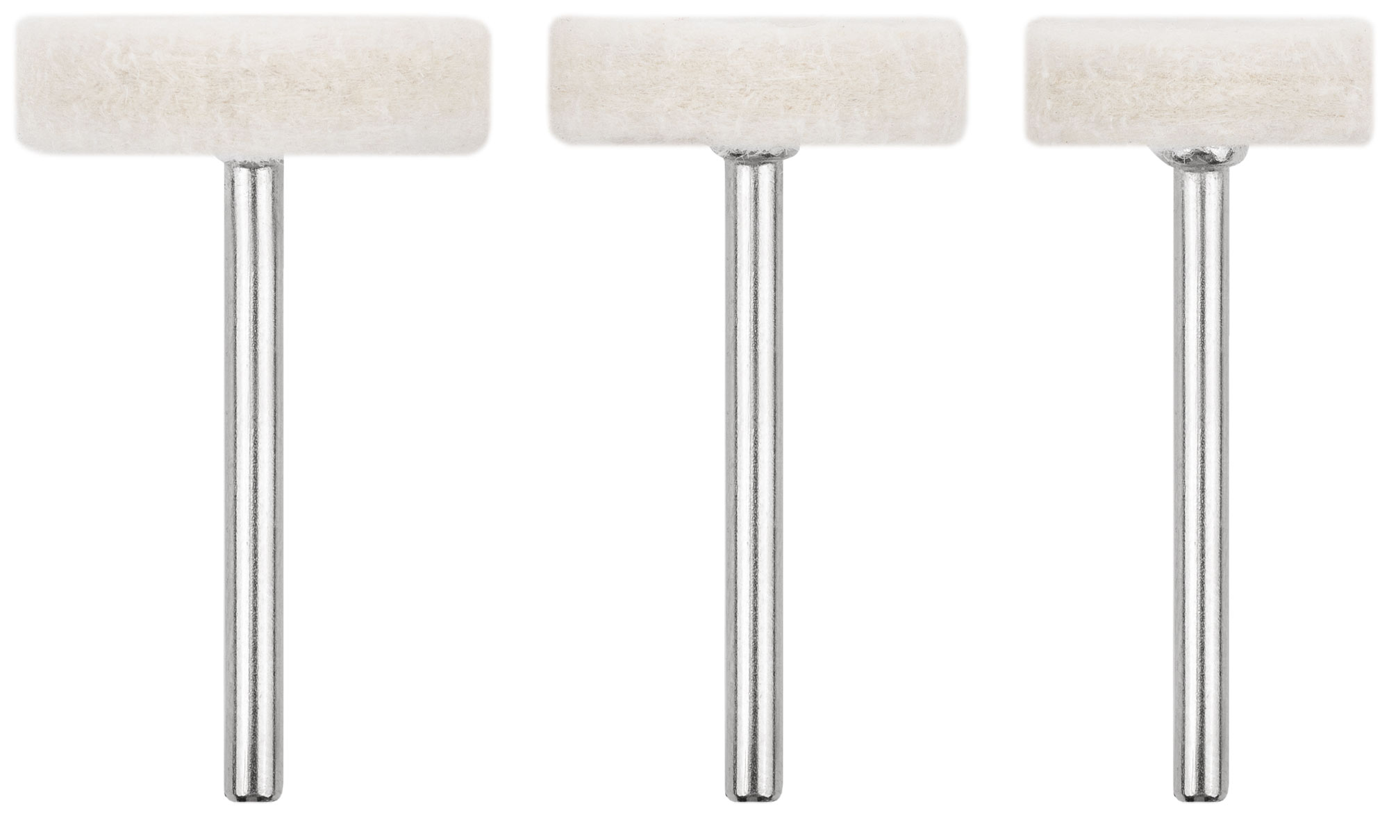 Набор 3 шт. Для гравировальной машины. D хвостовика=3,1 мм. Предназначены для полирования. Материал: шерсть. Упаковка: блистер.