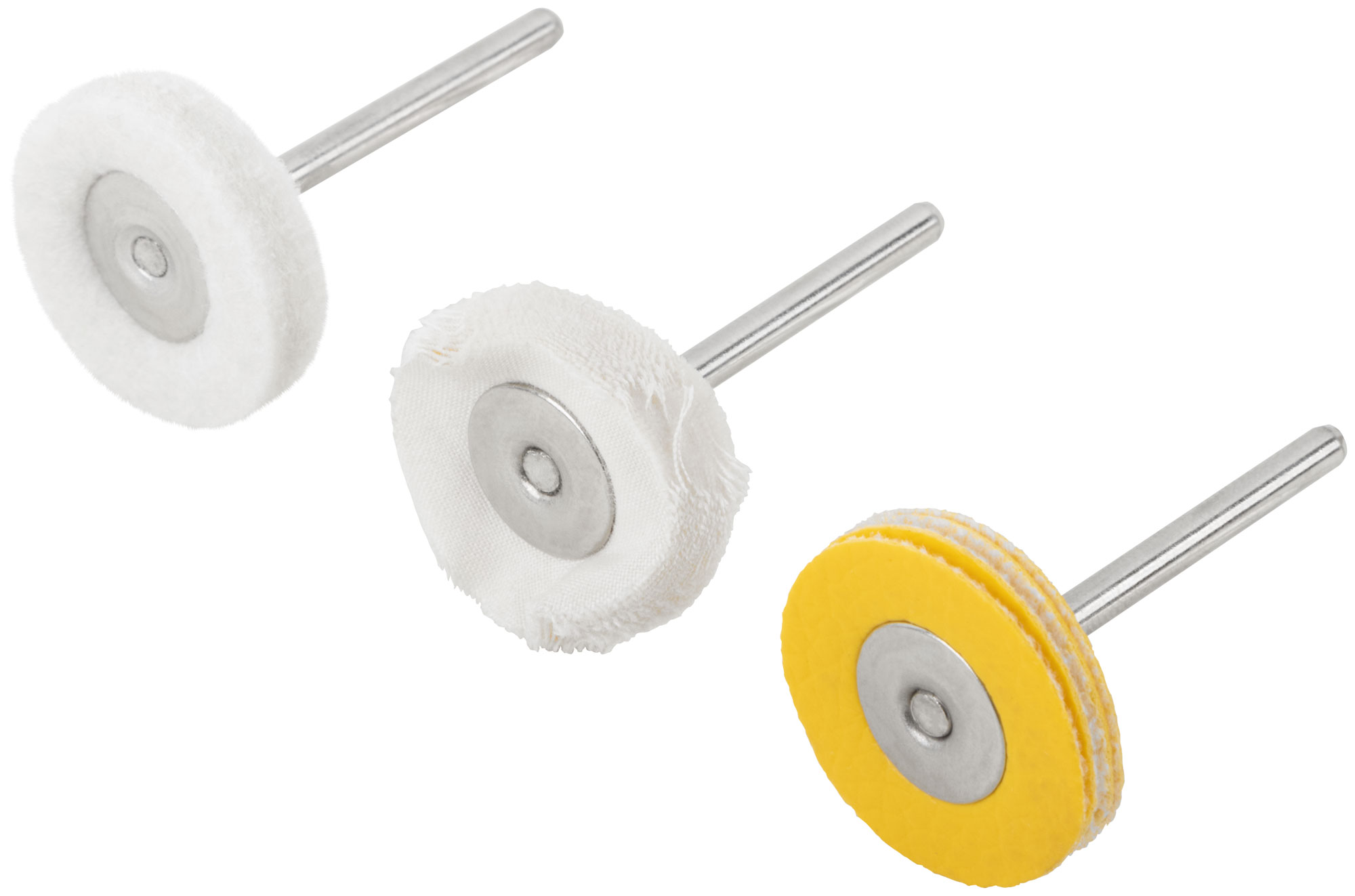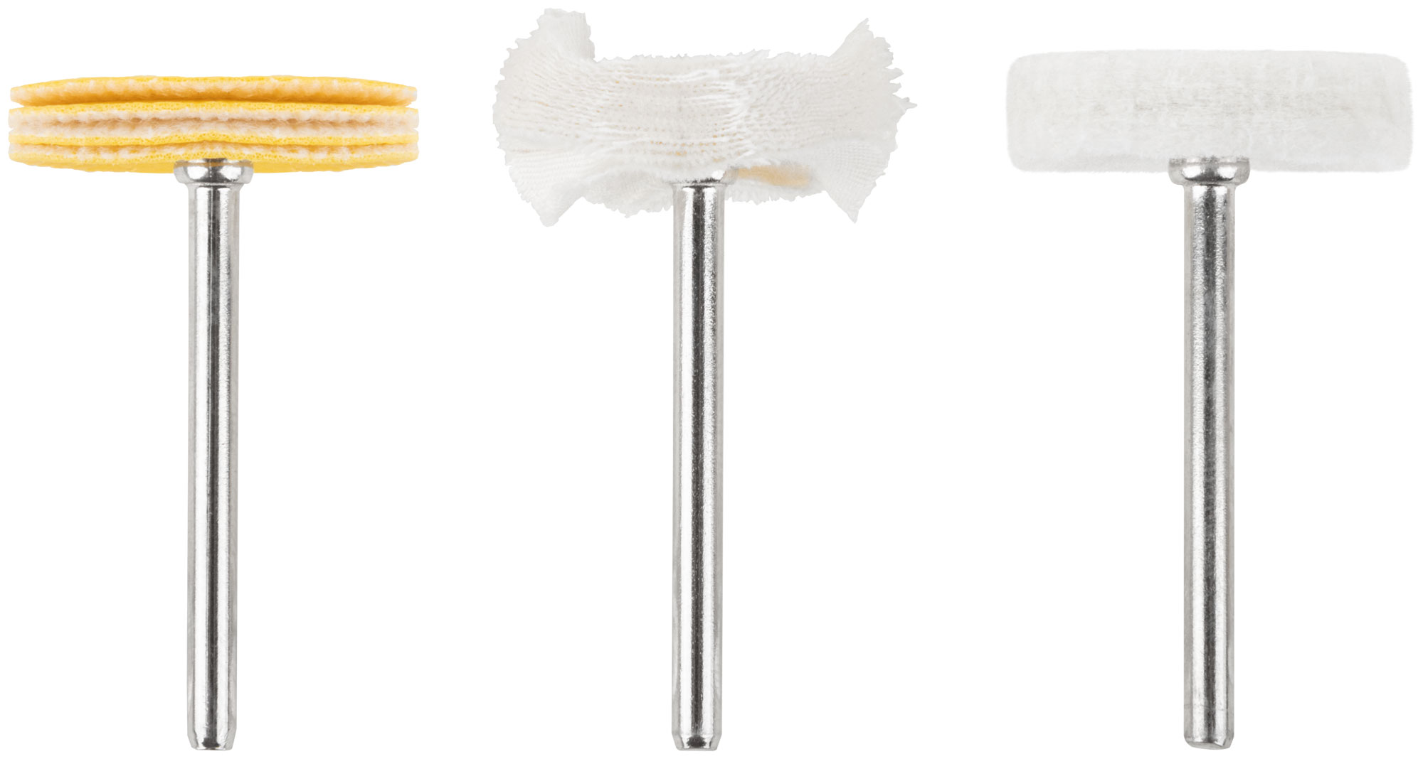 Набор 3 шт. Для гравировальной машины. Предназначен для полирования. D хвостовика=3,1 мм. Материал: хлопок, шерсть, поролон, инструментальная сталь. Упаковка: блистер.