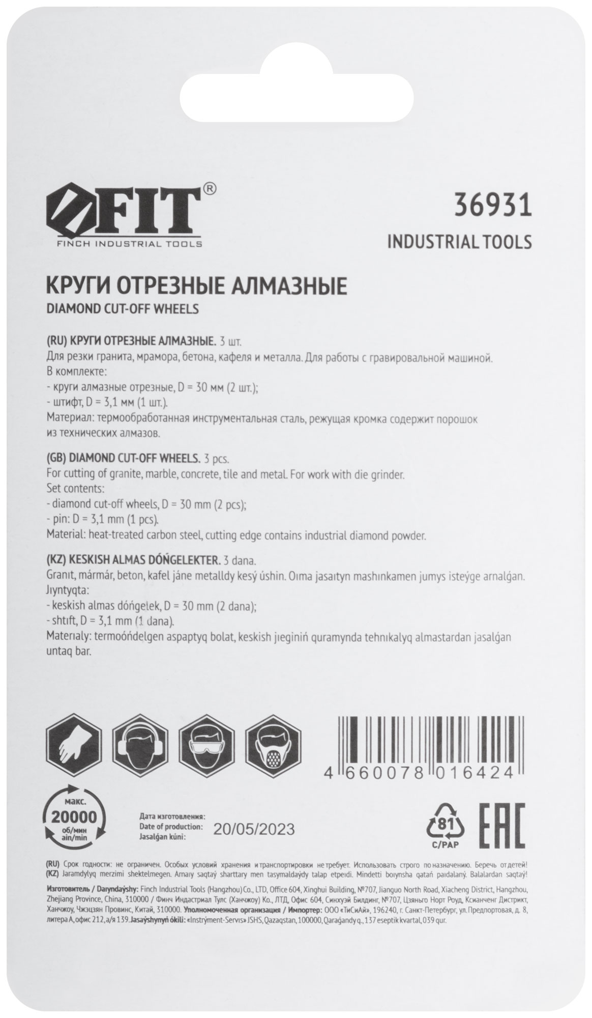 Для резки мрамора, бетона, гранита, керамики, металла и др. материалов. Для гравировальной машины. В комплекте: - круги алмазные отрезные, - штифт D=3,1 мм. Материал: инструментальная сталь, режущая кромка содержит порошок из технических алмазов. Упаковка: блистер.