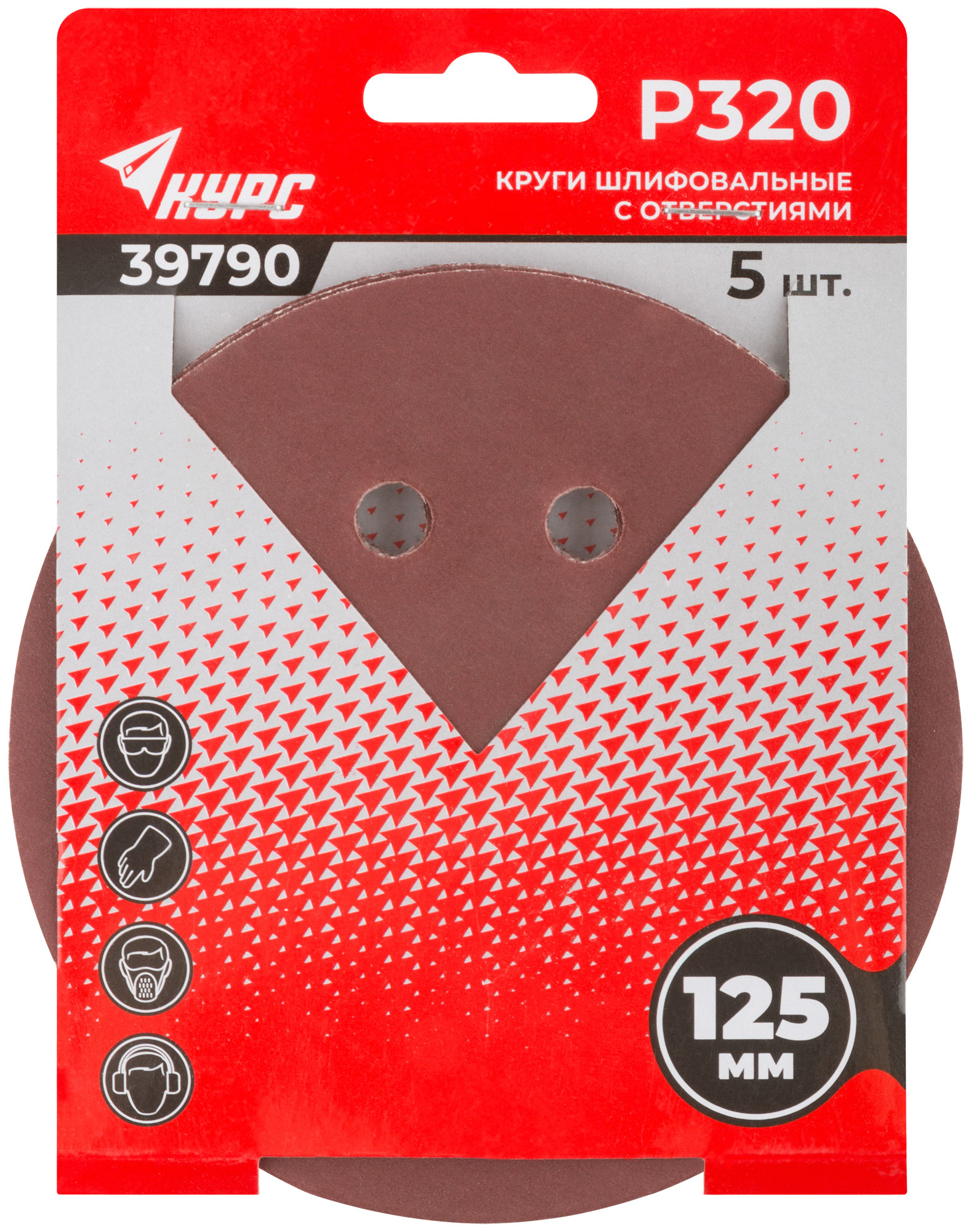 Круги шлифовальные с отверстиями (липучка), алюминий-оксидные, 125 мм, 5 шт. Р 320