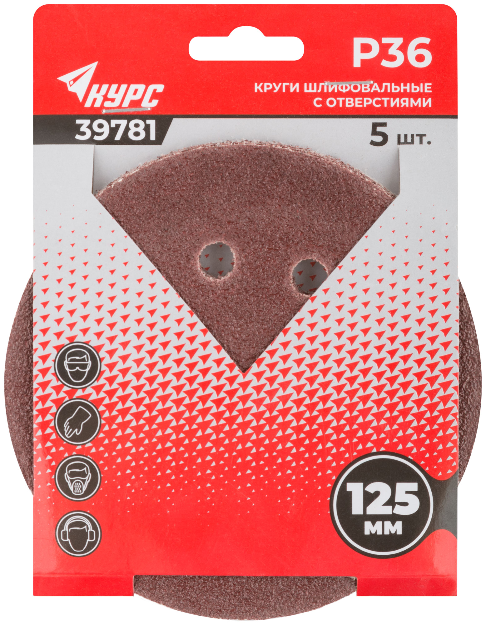 Круги шлифовальные с отверстиями (липучка), алюминий-оксидные, 125 мм, 5 шт. Р 36