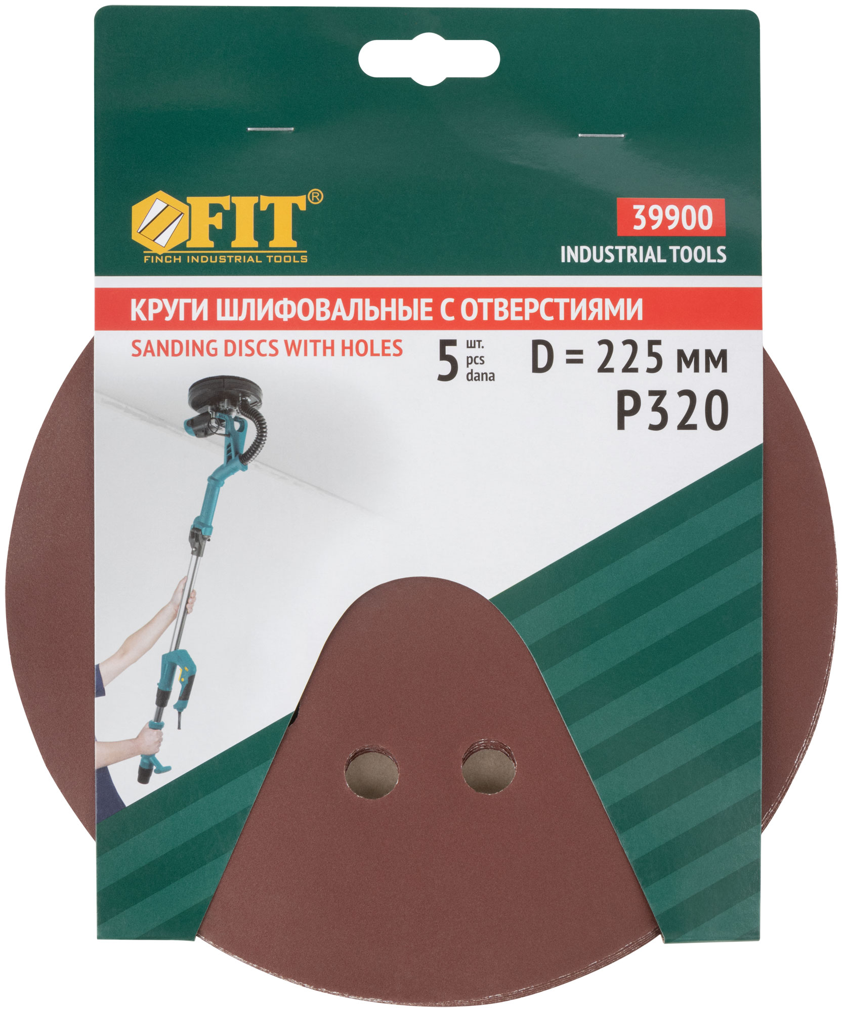 Круги шлифовальные с отверстиями (липучка), алюминий-оксидные, 225 мм, 5 шт. Р 320
