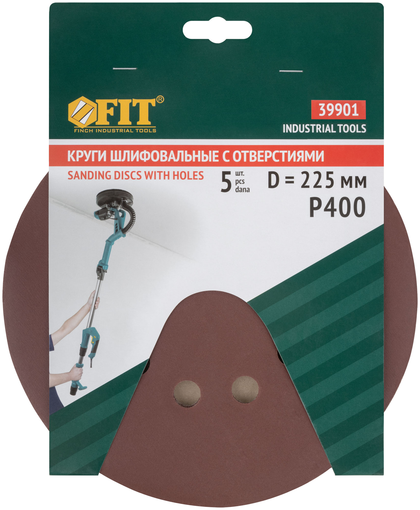 Круги шлифовальные с отверстиями (липучка), алюминий-оксидные, 225 мм, 5 шт. Р 400