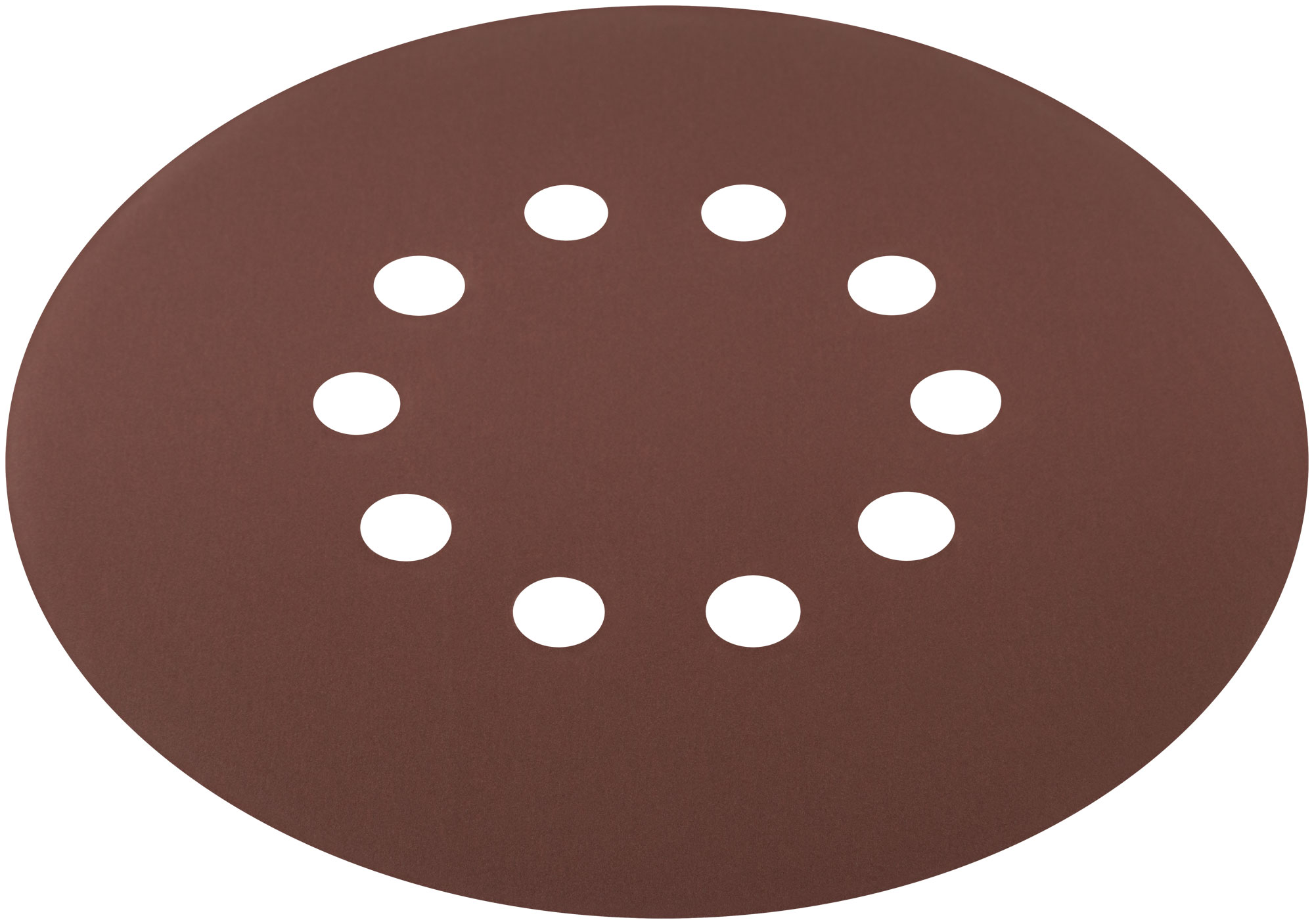 D=225 мм. Цена за набор 5 шт. На тканевой основе с липучкой, с 10 отверстиями. Используется с шлифмашиной для стен и потолков. Для сухого шлифования стен, потолков и полов внутри и снаружи различных помещений, финишного выравнивания сухих оштукатуренных и зашпаклеванных поверхностей, снятия тонких лакокрасочных покрытий и обоев. Материал: тканевая х/б основа, алюминий-оксидный абразивный слой. Упаковка: картонный конверт.
