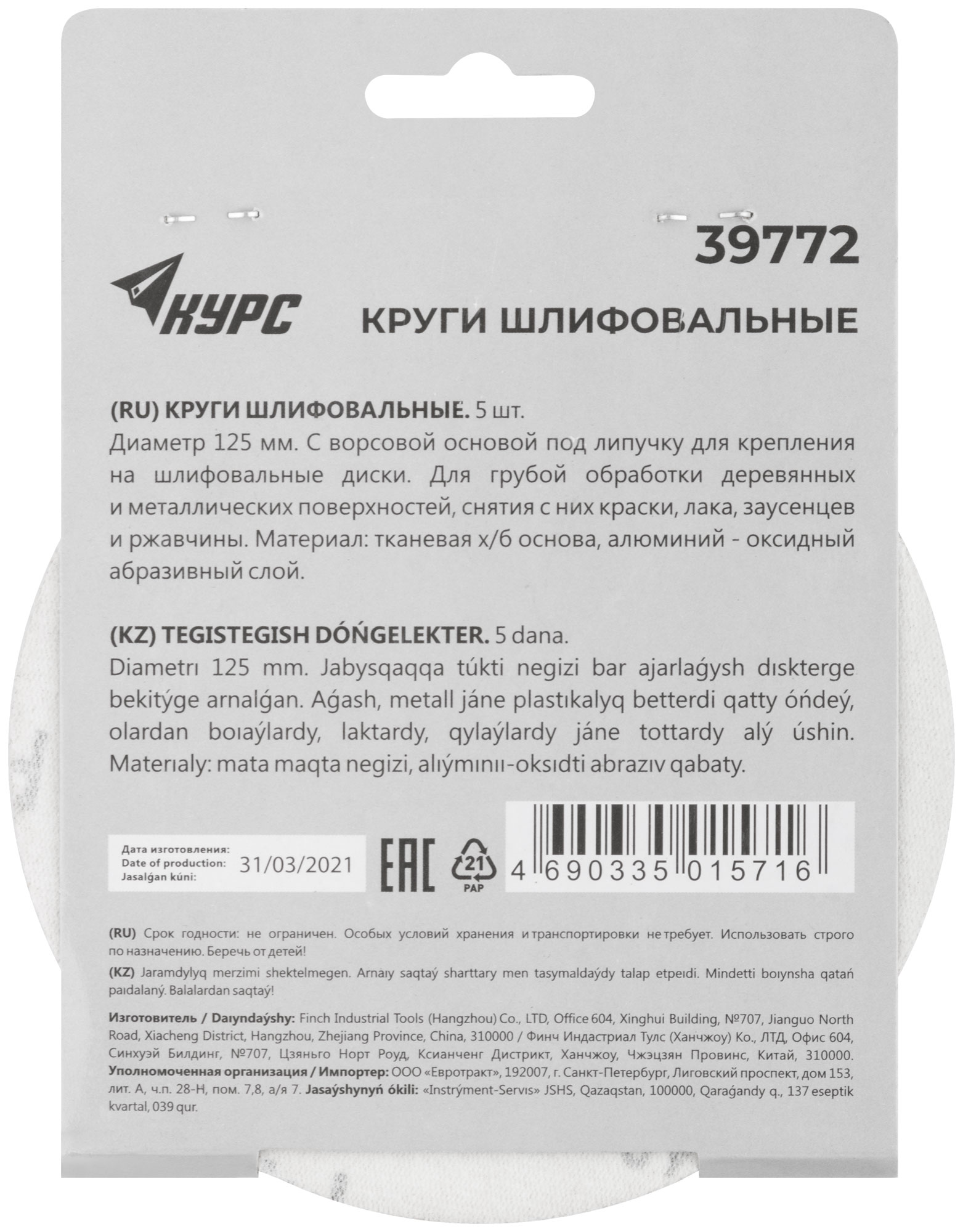 D=125 мм. Цена за набор 5 шт. На тканевой основе с липучкой. Для обработки плоских поверхностей. Материал: абразивный слой из оксида алюминия. Упаковка: картонный конверт.