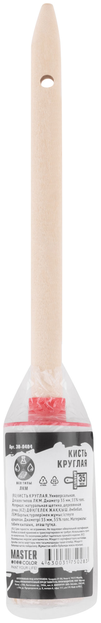 Круглая кисть, натур. щетина, 55% топс, деревянная ручка, Ø35 мм