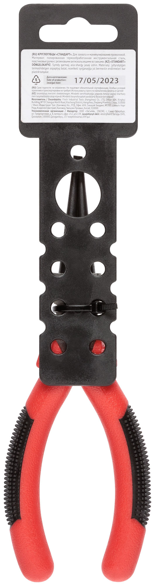 Круглогубцы "Стандарт", красно-черные пластиковые ручки, полированная сталь 165 мм