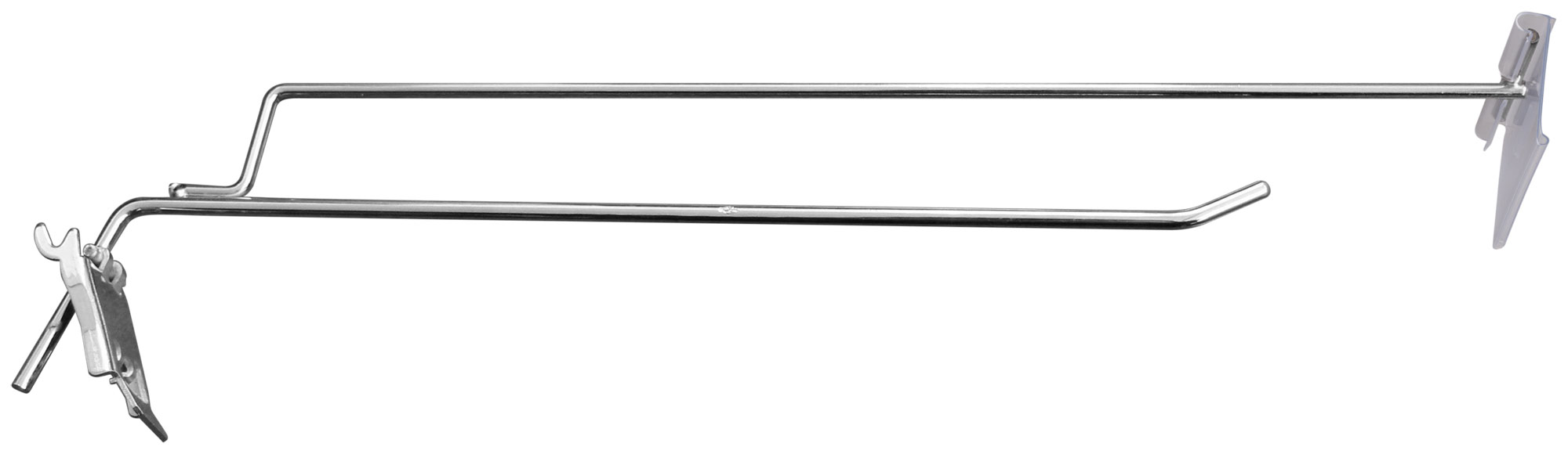 Крючок одинарный хромированный с защелкой, с пластиковым ценникодержателем.