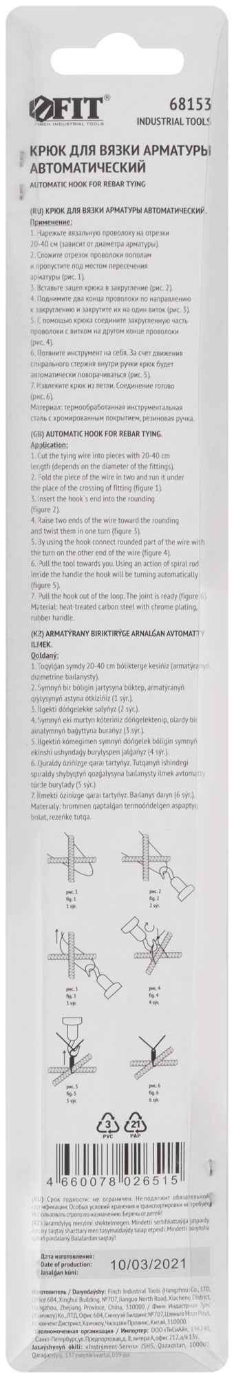 Для быстрого обвязывания арматуры при строительных работах. Материал: инструментальная сталь, пластиковая оплетка. Упаковка: блистер.