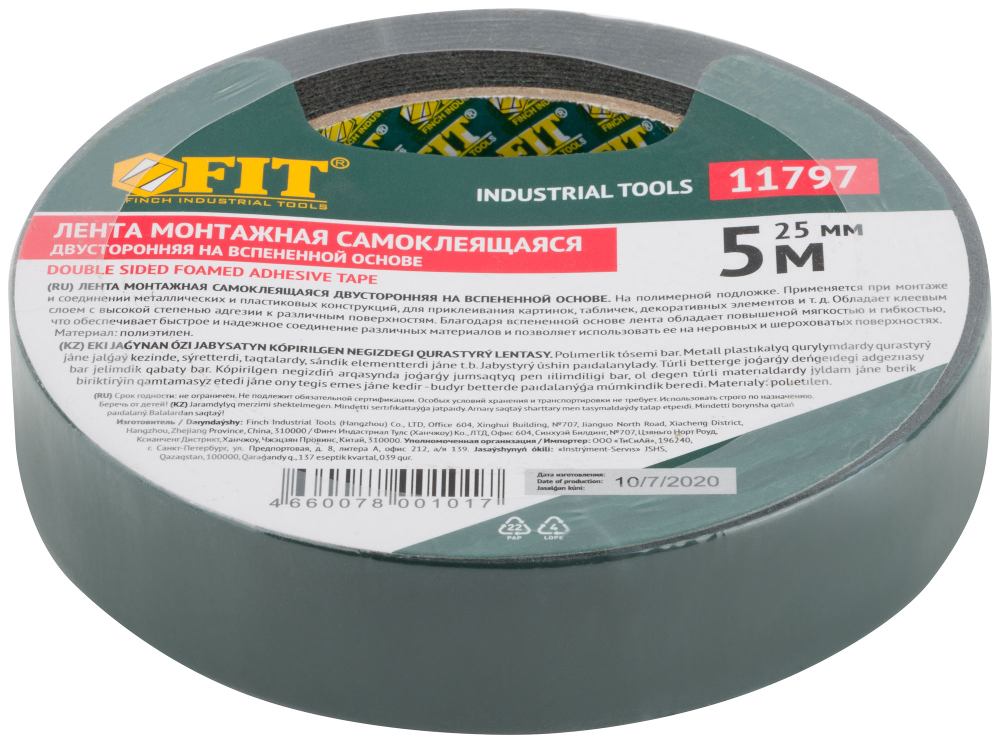 Лента клеящая, 2-х сторонняя монтажная,на вспененной основе, с полимерной подложкой, 25 мм х 5 м