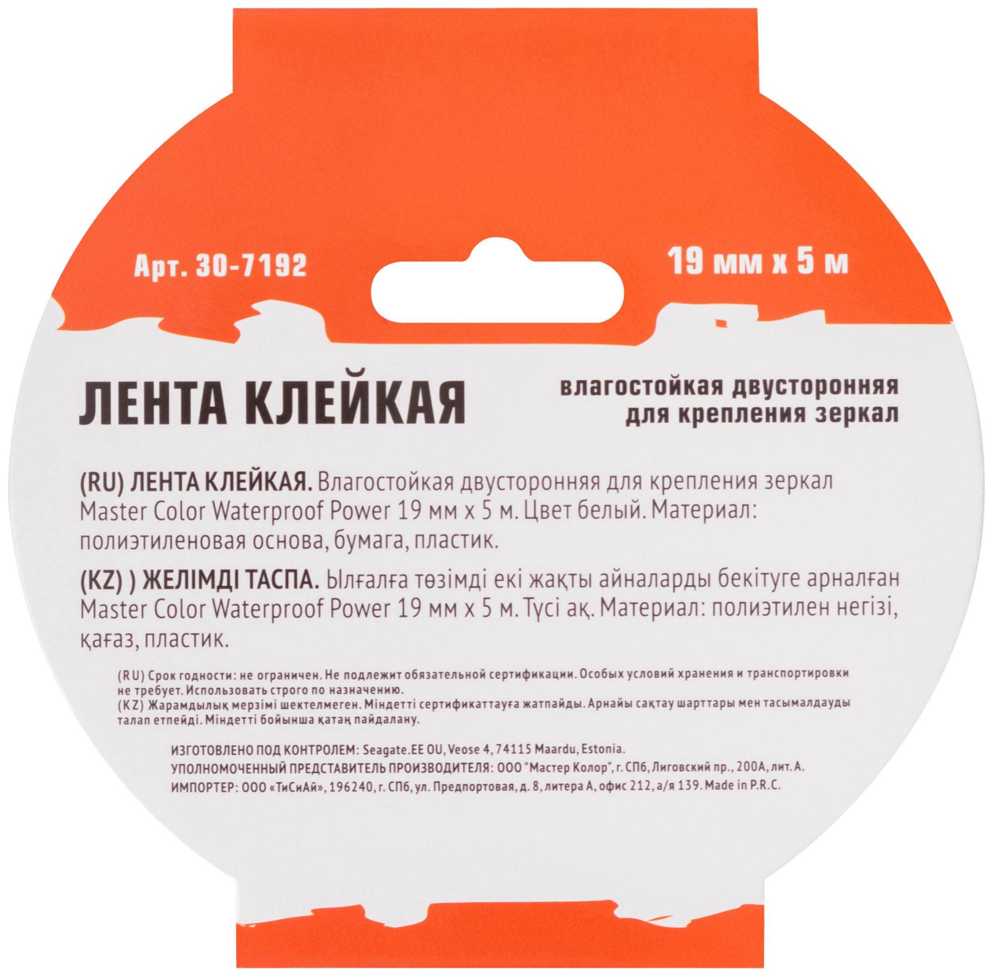 Лента клейкая двусторонняя для крепления зеркал Master Color Waterproof Power, 19 мм x 5 м, цвет белый