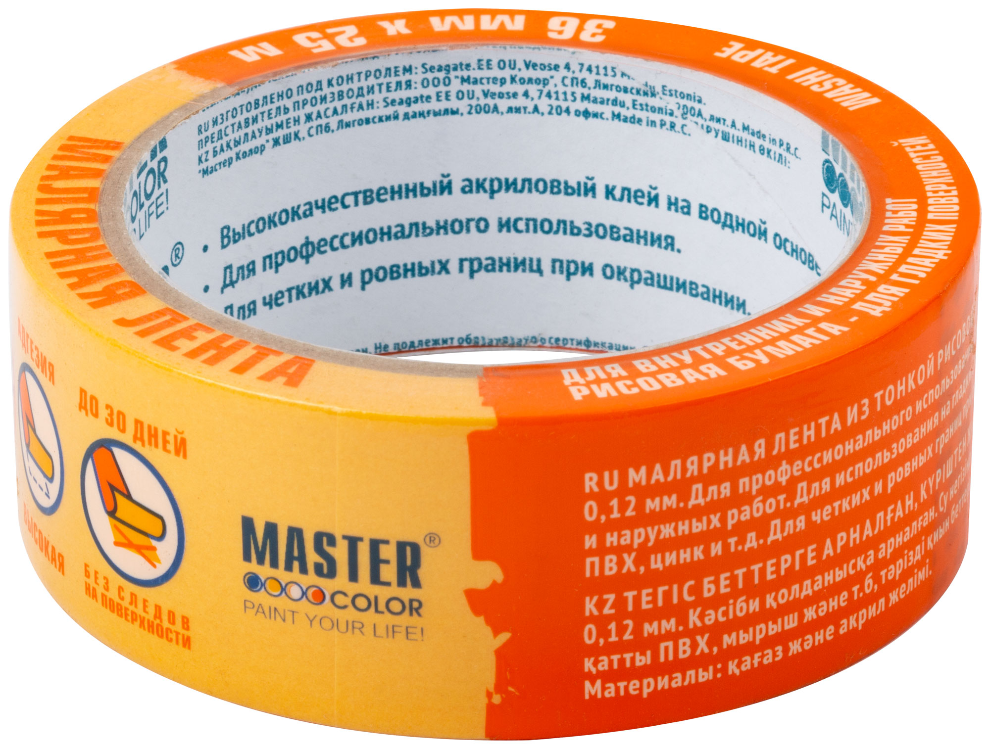 Лента малярная золотистая, рисовая бумага, термостойк. до 120°C, УФ-стойкость до 30 дней, 36 мм х 25 м