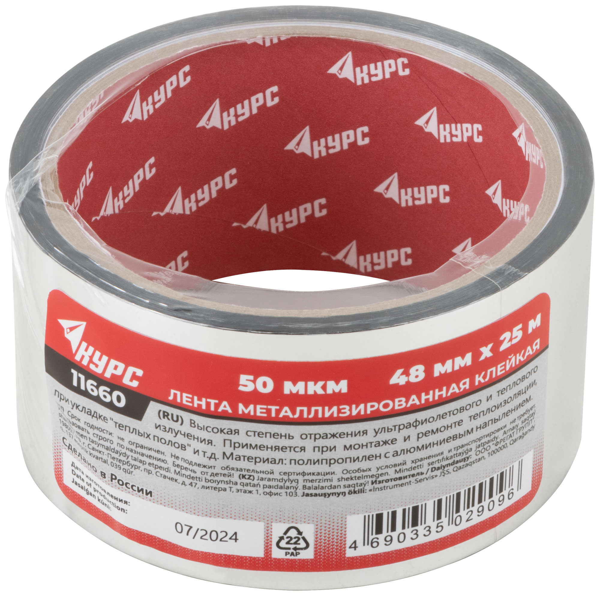 50 мкм. Высокая степень отражения ультрафиолетового и теплового излучения. Применяется при монтаже и ремонте теплоизоляции, при укладке "теплых полов" и т.д.