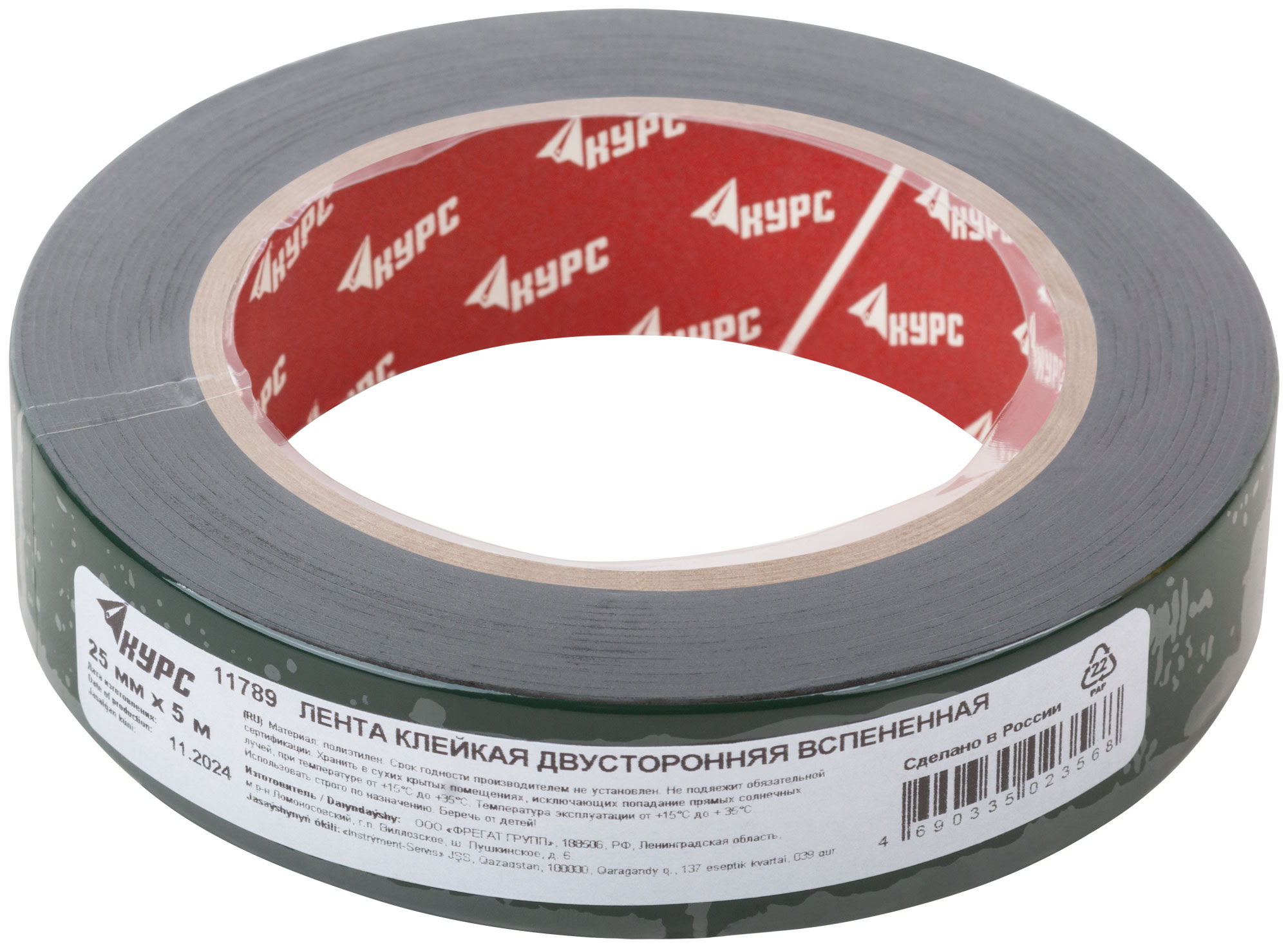 Лента монтажная клейкая на вспененной основе, черная 25 мм х 5 м