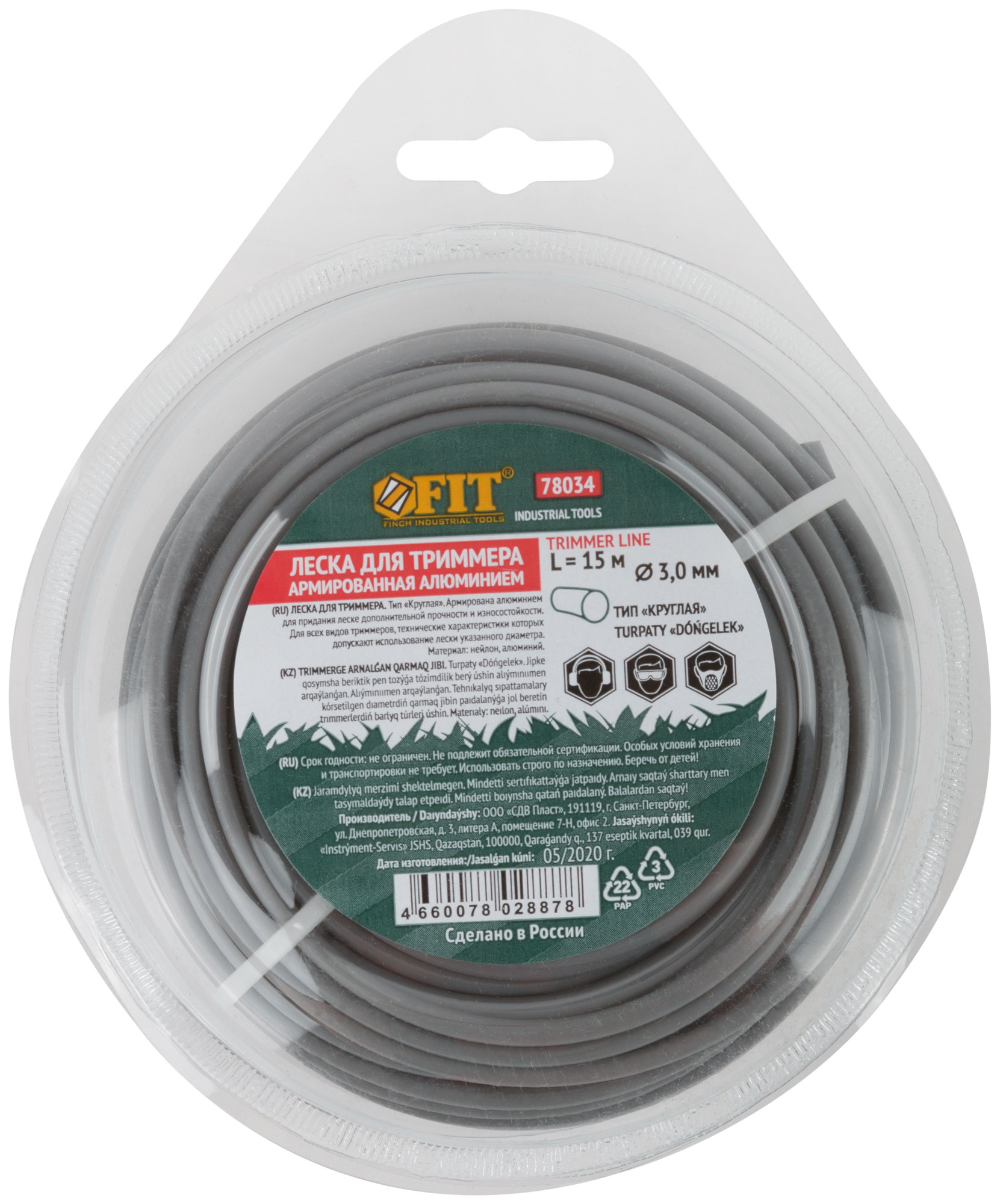 Леска для садовых триммеров армированная алюминием "Круглая" 3,0 мм х 15 м