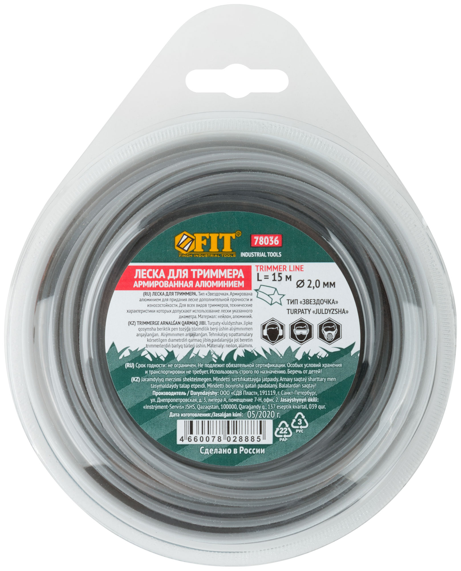 Леска для садовых триммеров армированная алюминием "Звезда" 2,0 мм х 15 м