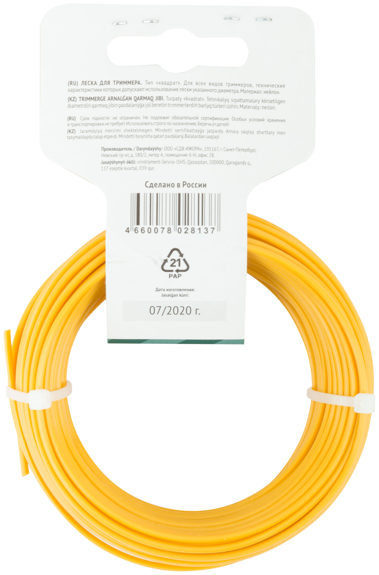 Леска для садовых триммеров "Квадрат" 2,0 мм х 15 м