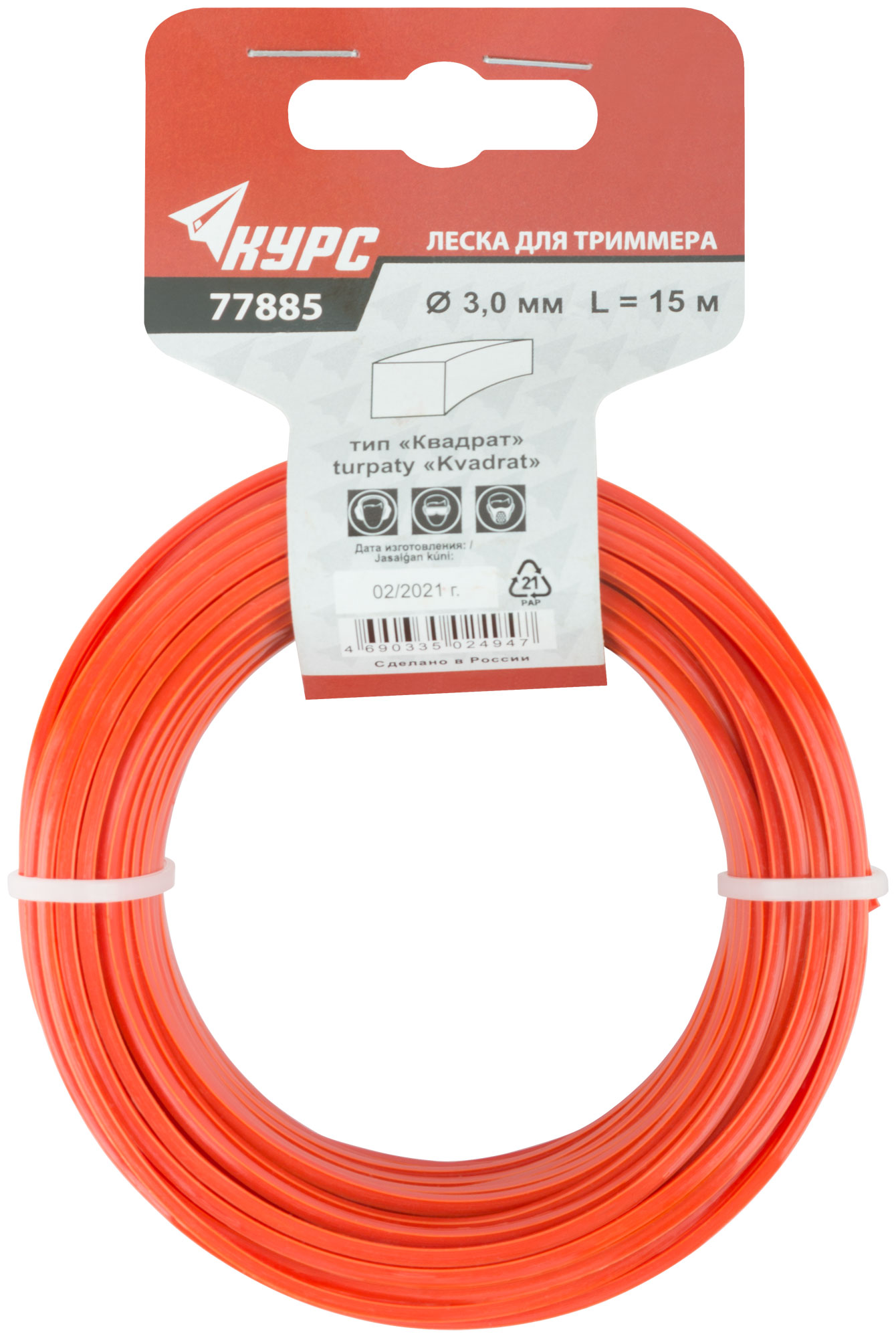 Леска для садовых триммеров "Квадрат" 3,0 мм х 15 м