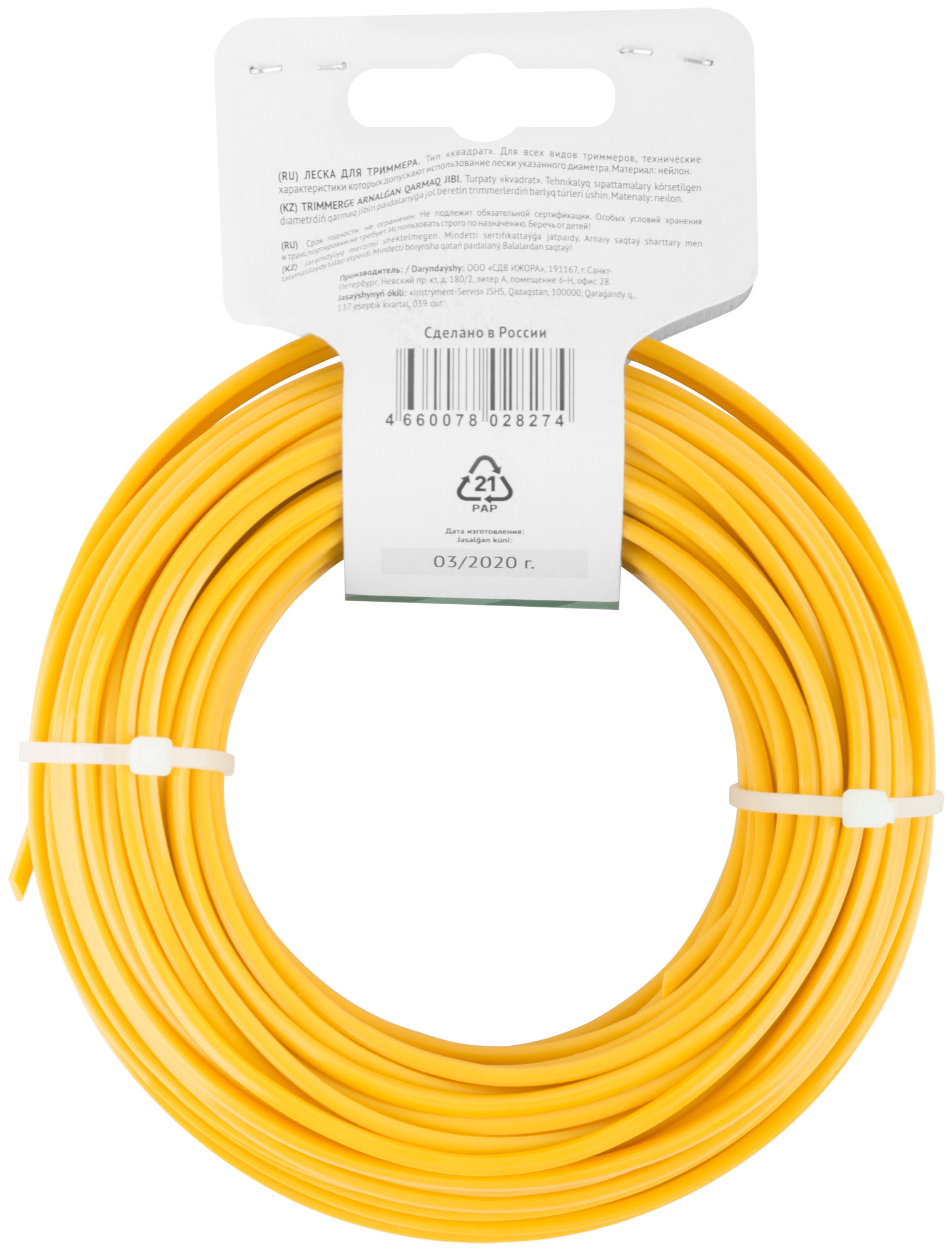 Леска для садовых триммеров "Квадрат" 3,0 мм х 25 м