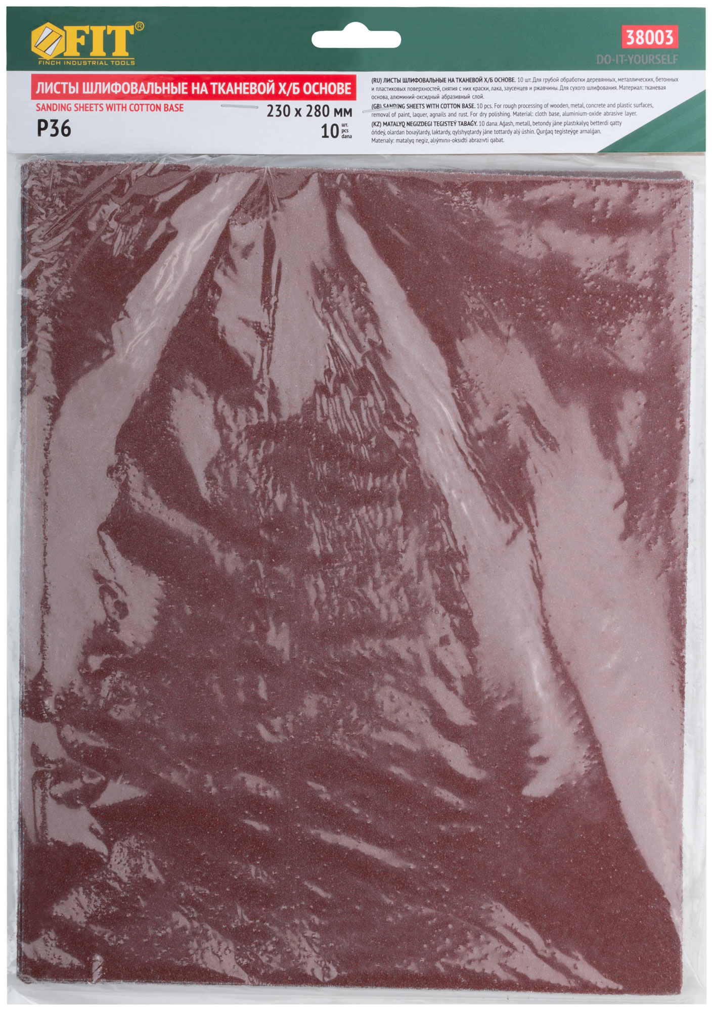 Листы шлифовальные на тканевой основе, алюминий-оксидный абразивный слой 230х280 мм, 10 шт. Р 36