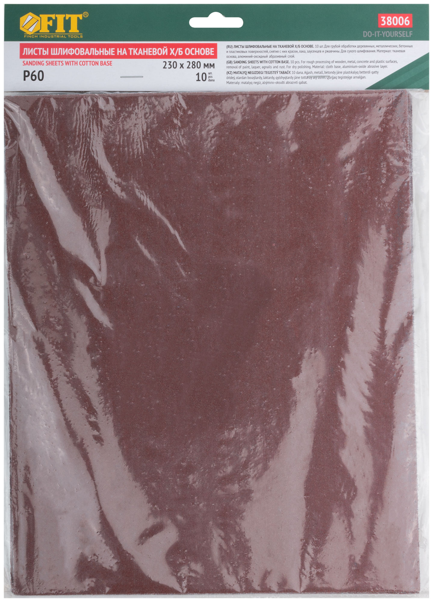 Набор 10 шт. В листах 230 x 280 мм. Для работы по дереву, металлу, пластику, бетону и другим материалам. Материал: тканевая х/б основа, алюминий-оксидный абразивный слой. Упаковка: п/э пакет с картонным подвесом.