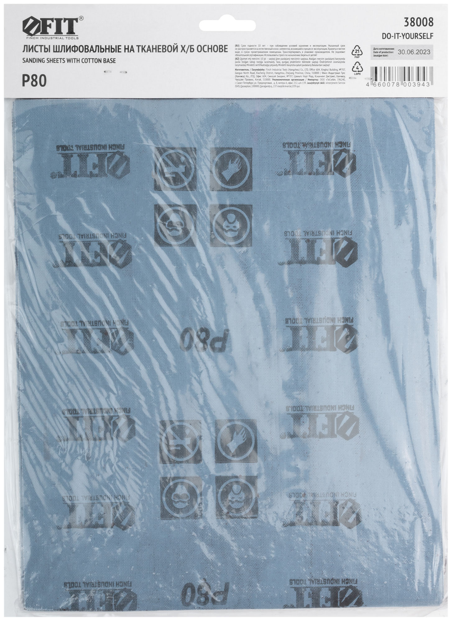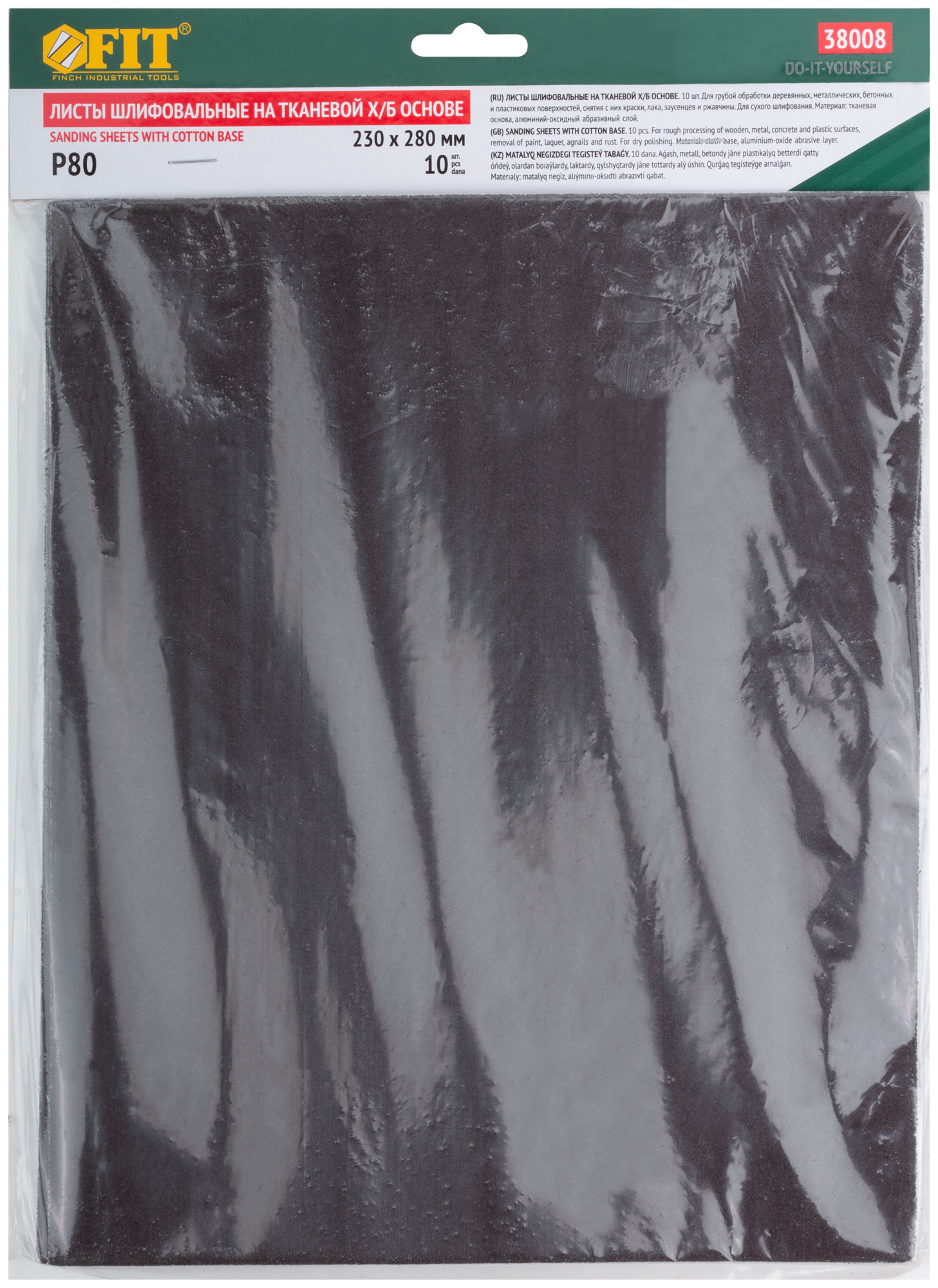 Листы шлифовальные на тканевой основе, алюминий-оксидный абразивный слой 230х280 мм, 10 шт. Р 80