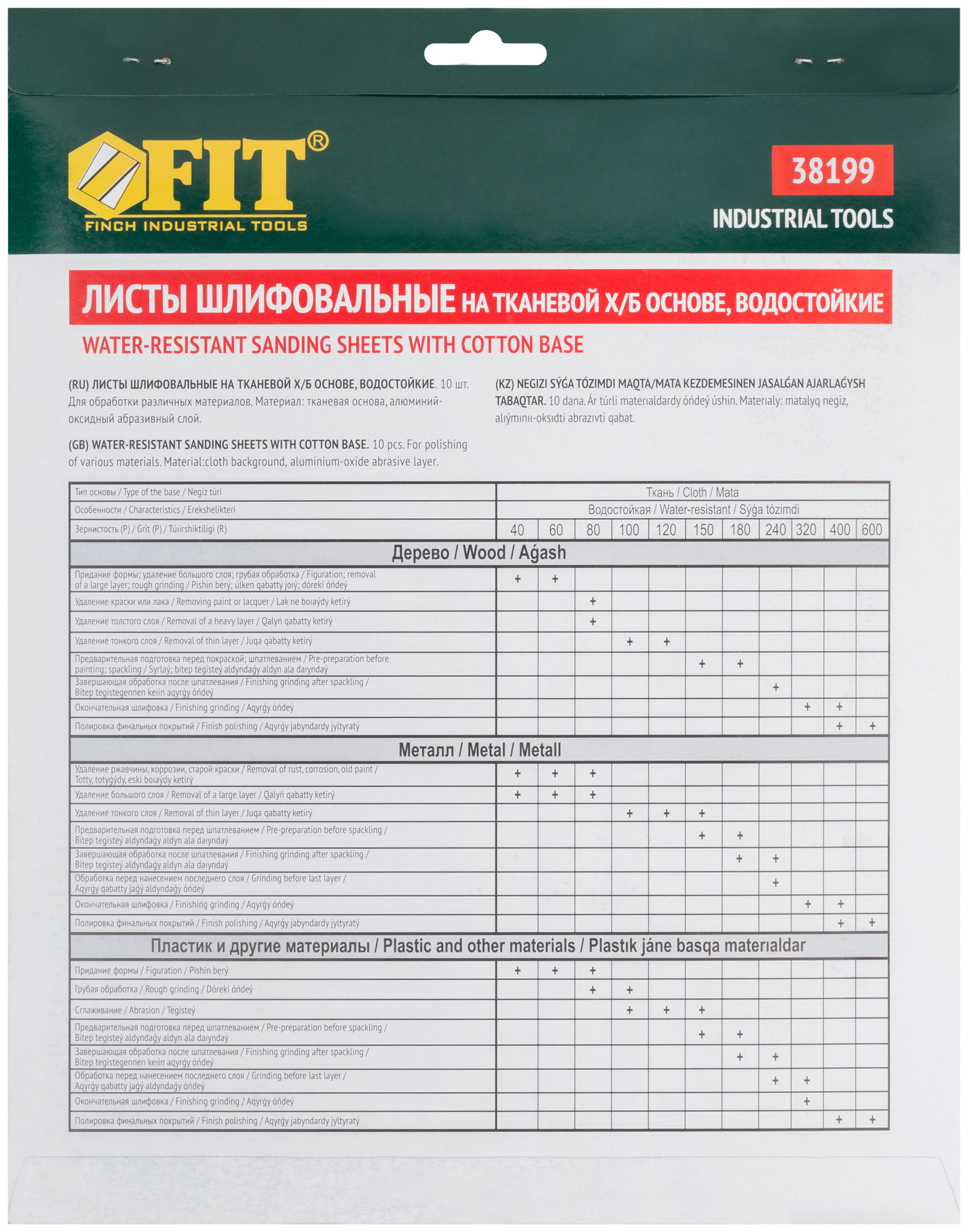 Профи. Для камня, дерева и металла, 230х280 мм, набор 10 листов. На тканевой основе. Водостойкая. Материал: алюминий-оксидный абразивный слой. Упаковка: картонный конверт.