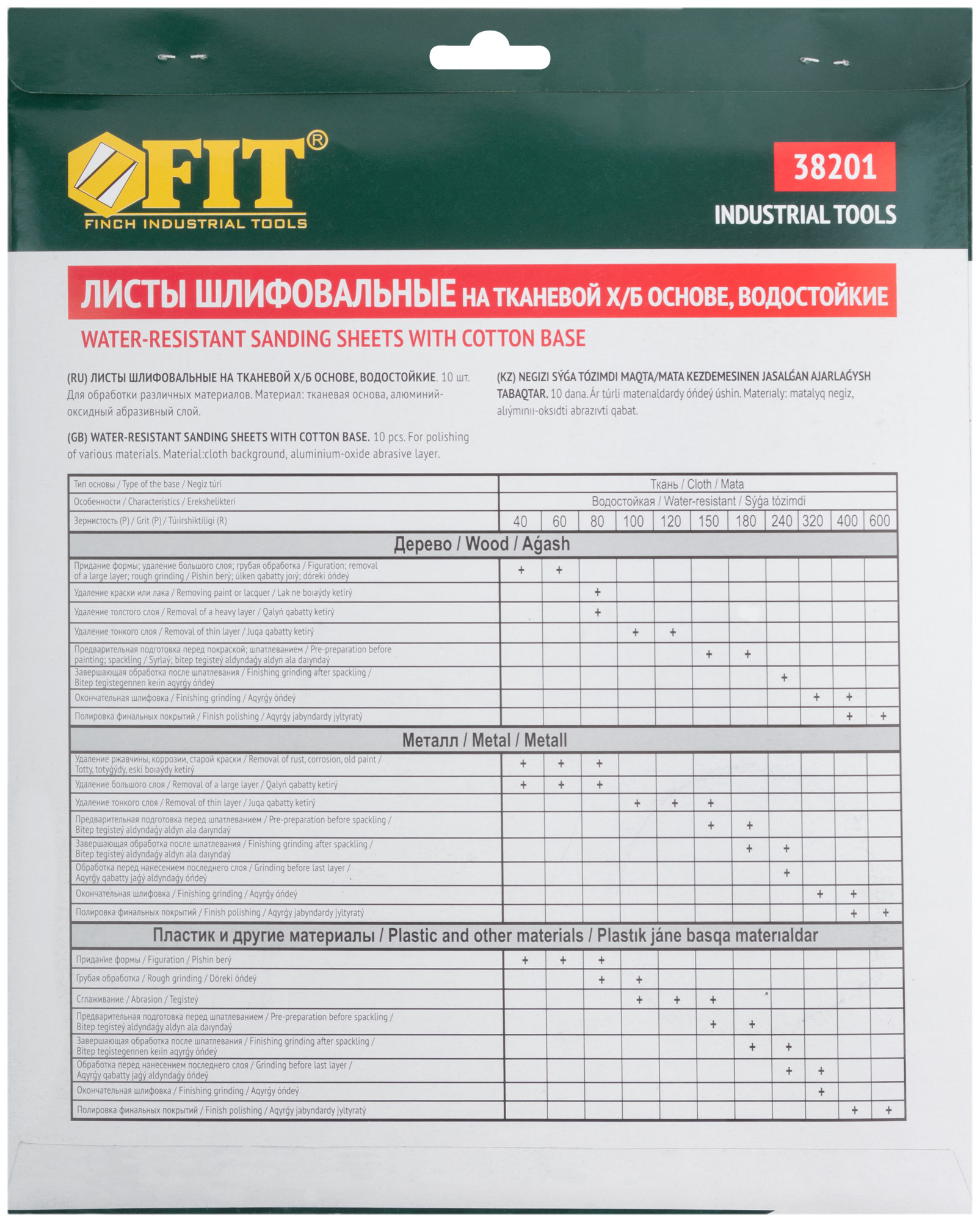 Профи. Для камня, дерева и металла, 230х280 мм, набор 10 листов. На тканевой основе. Водостойкая. Материал: алюминий-оксидный абразивный слой. Упаковка: картонный конверт.