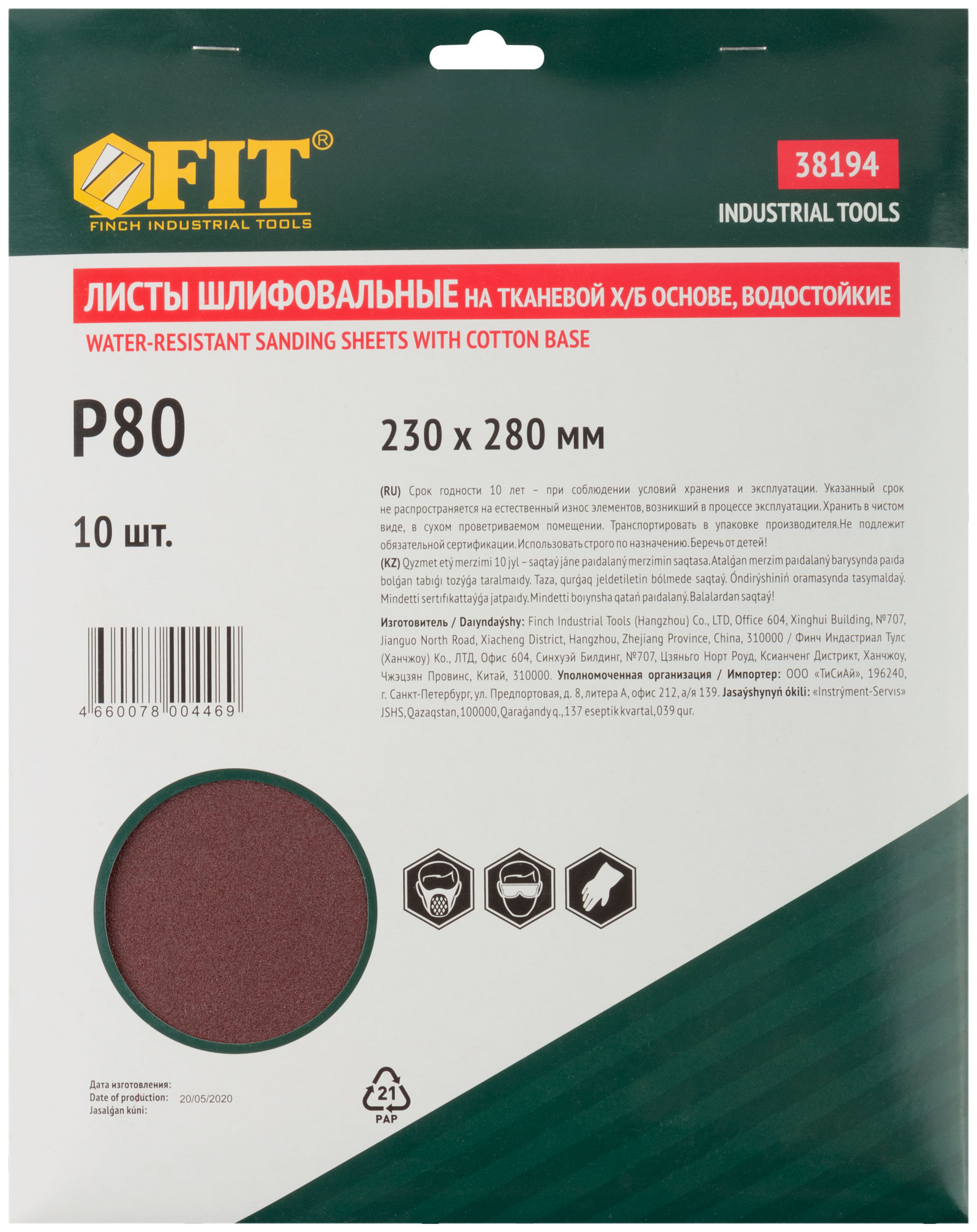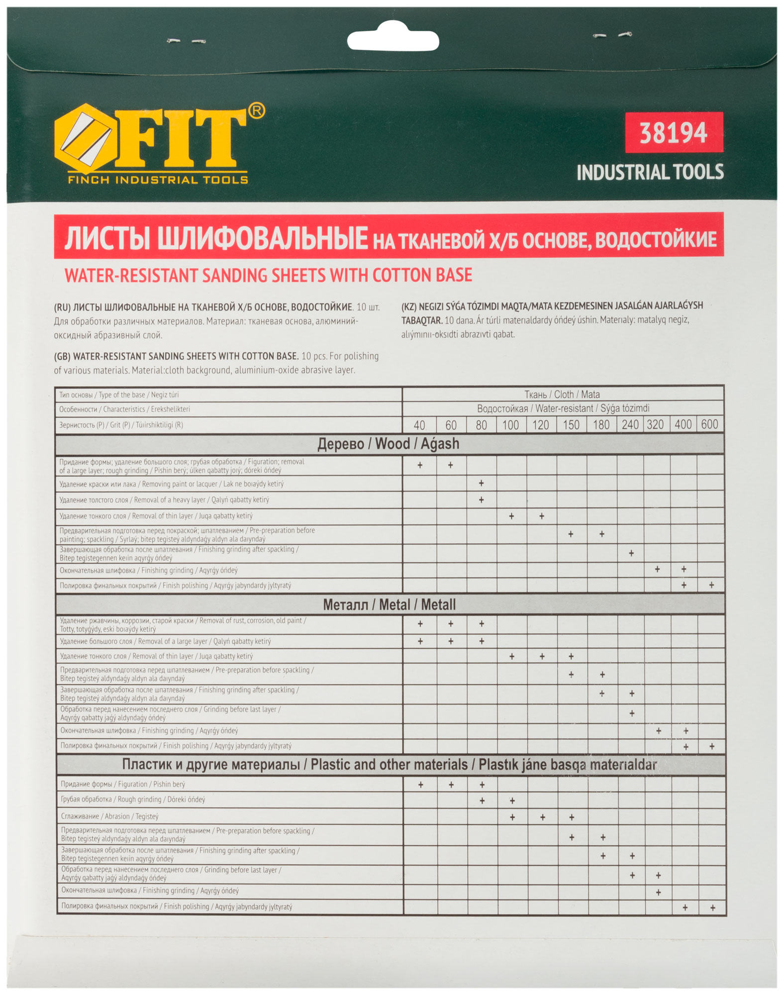 Профи. Для камня, дерева и металла, 230х280 мм, набор 10 листов. На тканевой основе. Водостойкая. Материал: алюминий-оксидный абразивный слой. Упаковка: картонный конверт.