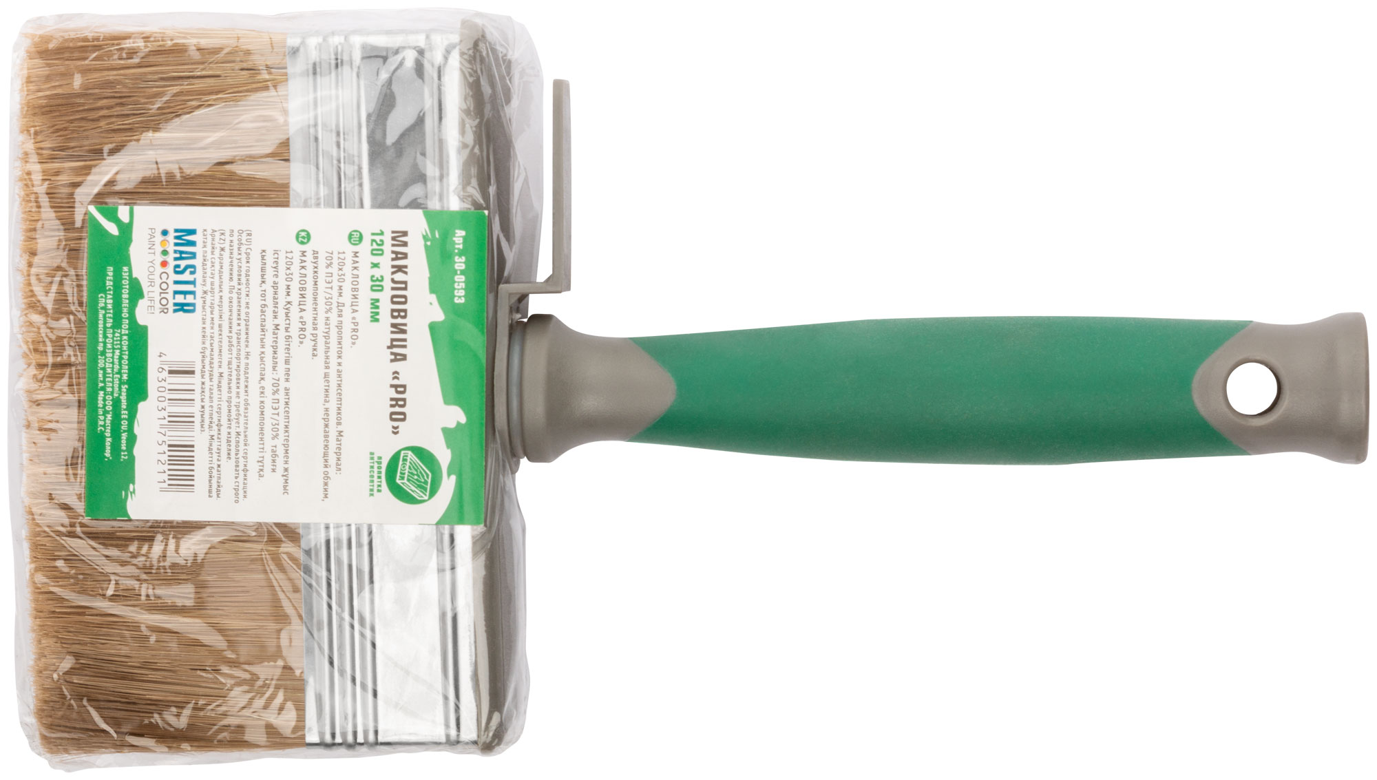 Макловица, 70% ПЭT/30% натуральная щетина, нерж. обжим, 2-К ручка, 120 х 30 мм