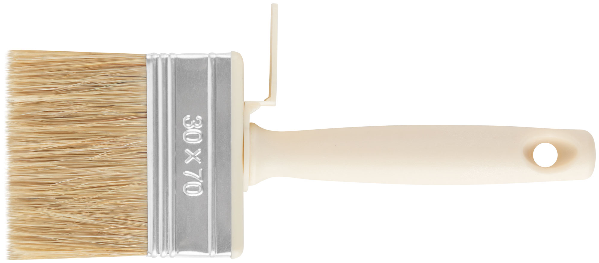 «Мини». Для работы со всеми видами лакокрасочных материалов. Натуральная светлая щетина, пластиковый корпус.