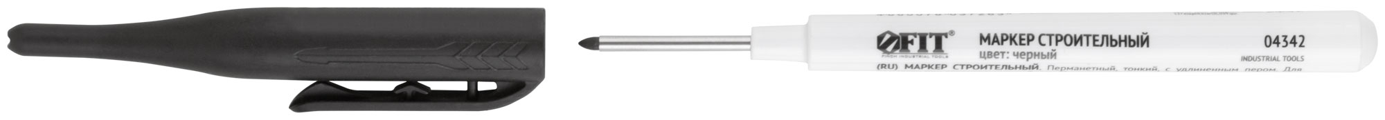 Маркер строительный перманентный, тонкий, удлиненное перо, черный