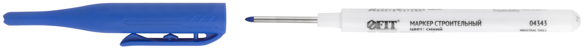 Маркер строительный перманентный, тонкий, удлиненное перо, синий