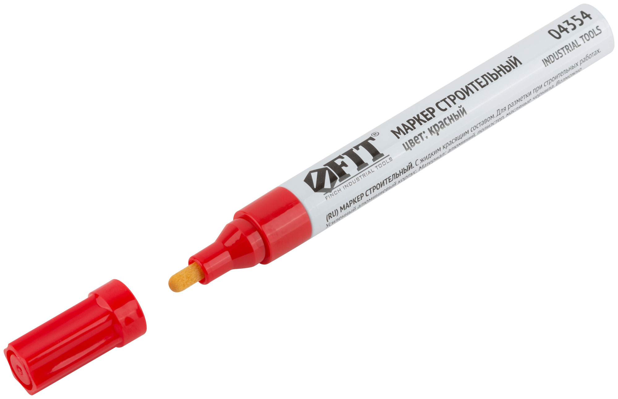 Маркер строительный с жидким красящим составом, алюминиевый корпус, красный