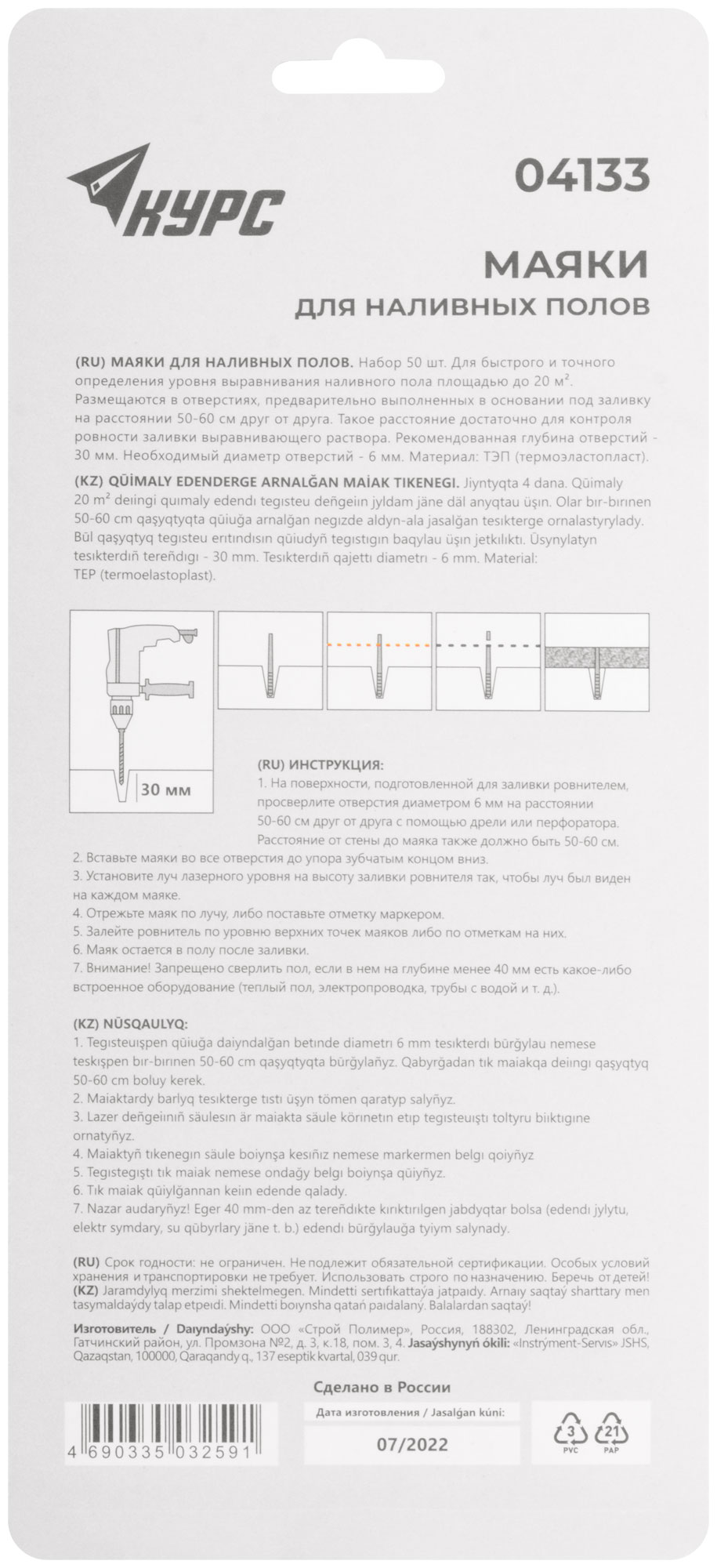 Для быстрого и точного определения уровня выравнивания наливного пола площадью до 20 м². Для установки потребуется дрель или перфоратор и лазерный уровень для разметки. Материал: термопластичный эластомер. Упаковка: блистер.