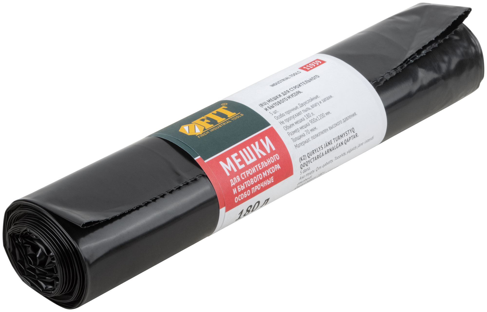 Мешки для строительного мусора, ПВД особопрочные, 180 л, 900х1200 мм, толщина 70 мкм, 5 шт.