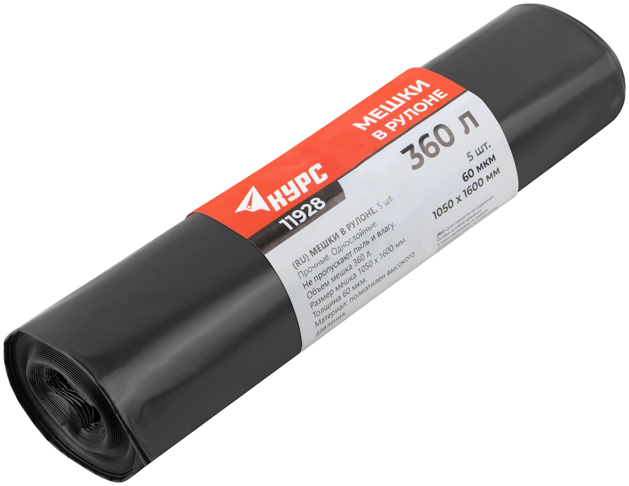 Мешки для строительного мусора, ПВД прочные, 360 л, 1050х1600 мм, толщина 60 мкм, 5 шт.